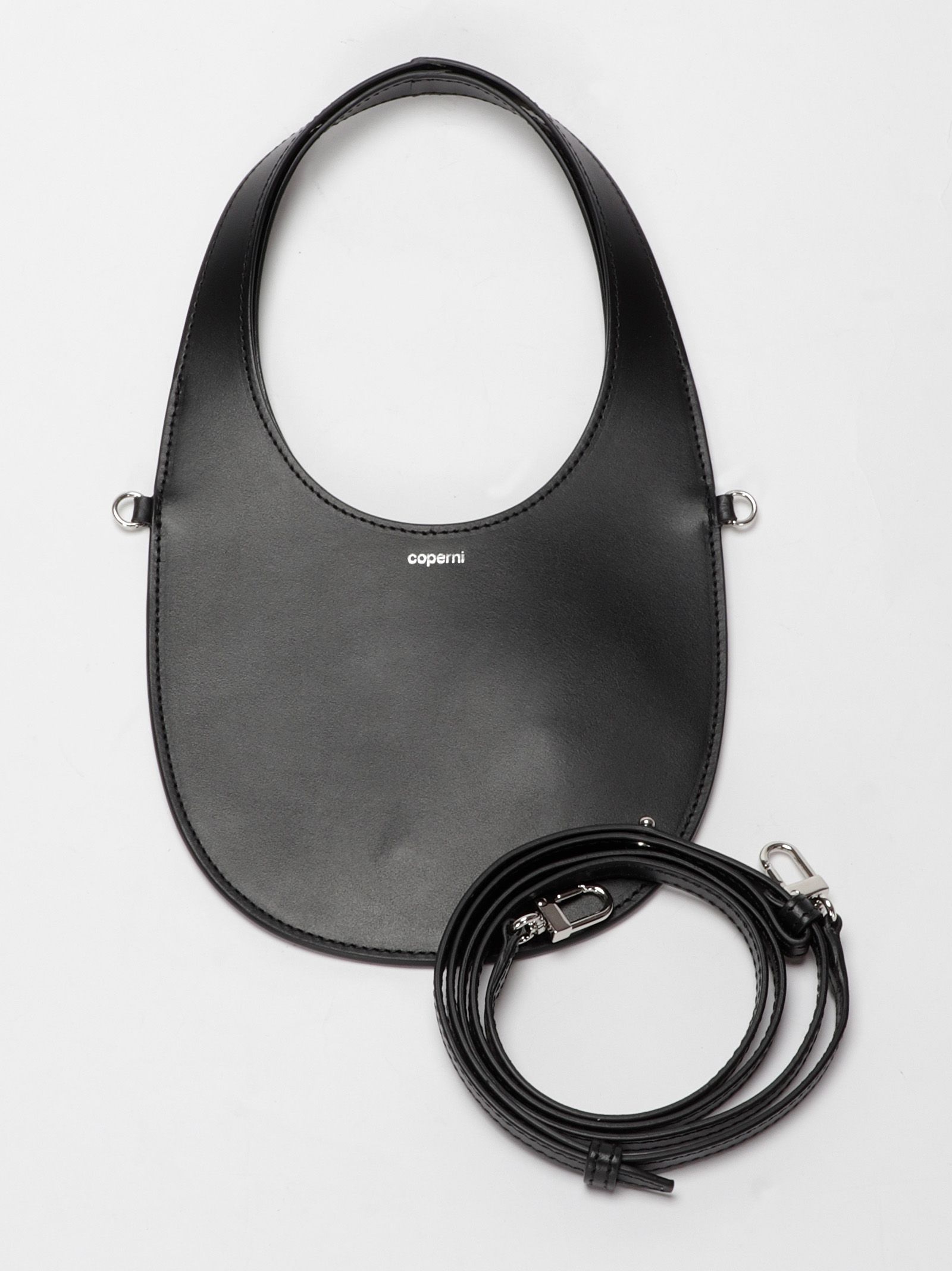 Bolso mini ovalado, bandolera ajustable y extraíble, sin cierre.