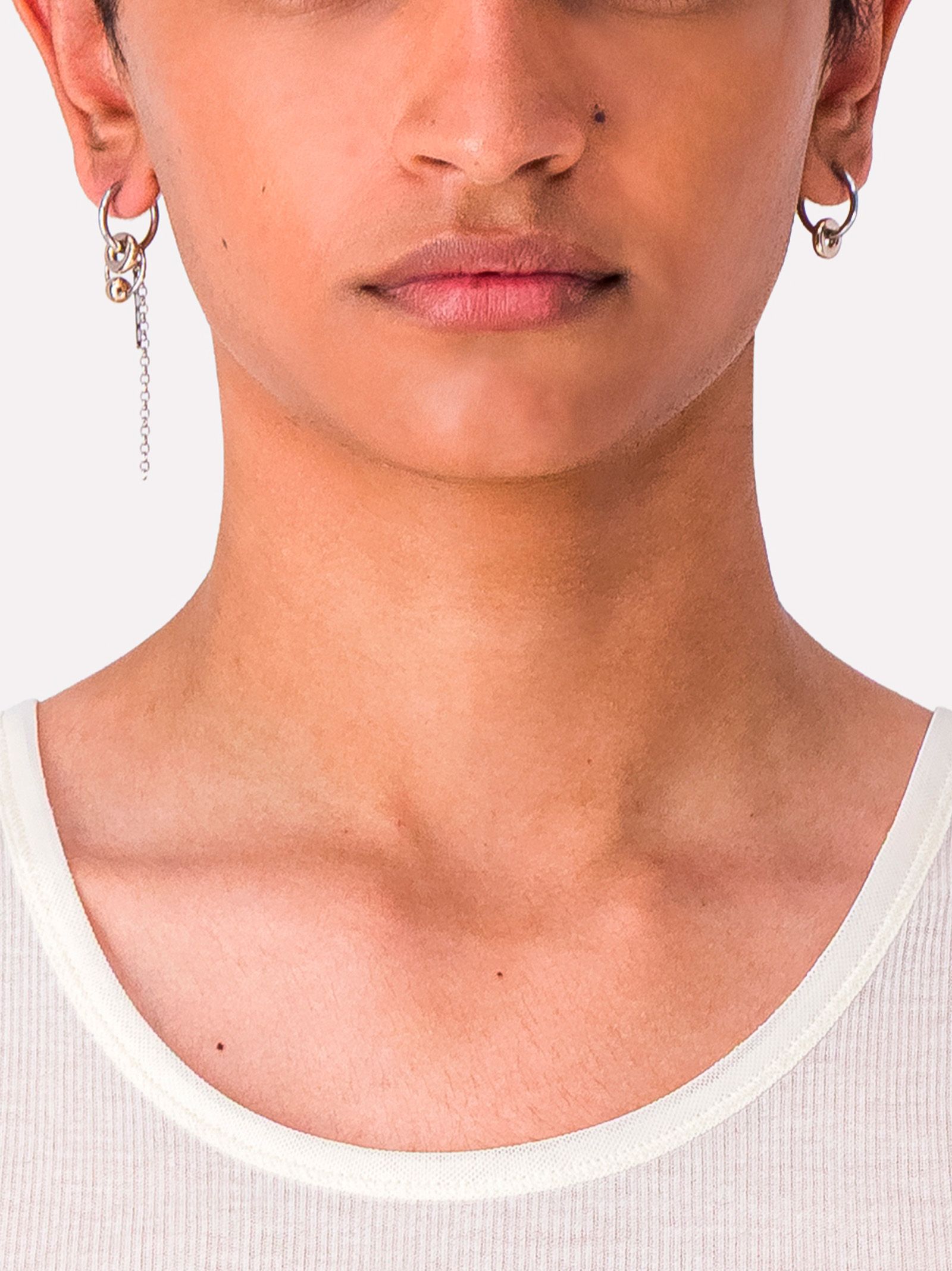 Par de pequeños pendientes de plata y oro, accesorios y cadena, cierre a presión.