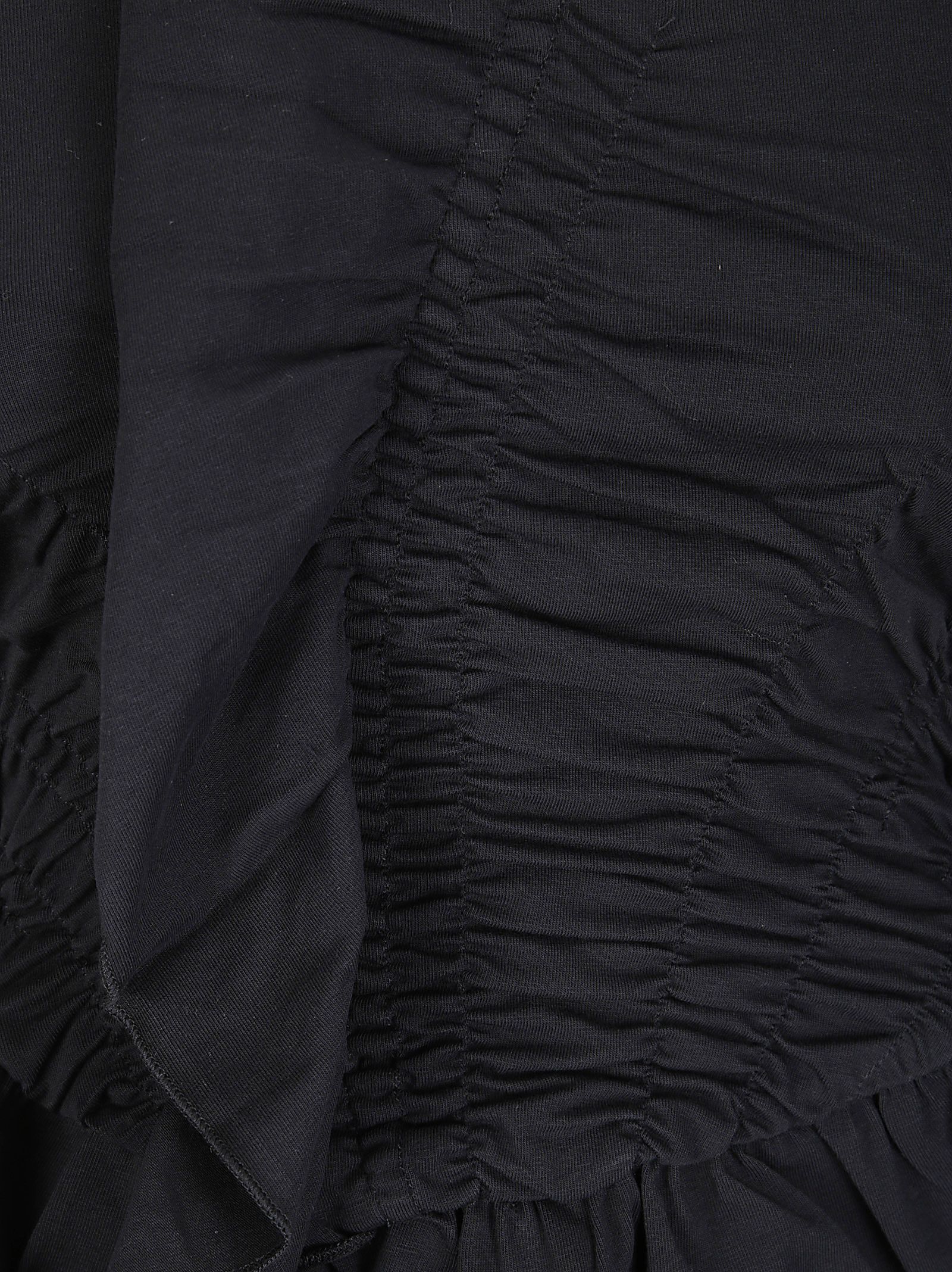 Camiseta de cuello redondo, manga corta, algodón elástico con fruncidos, corte entallado.