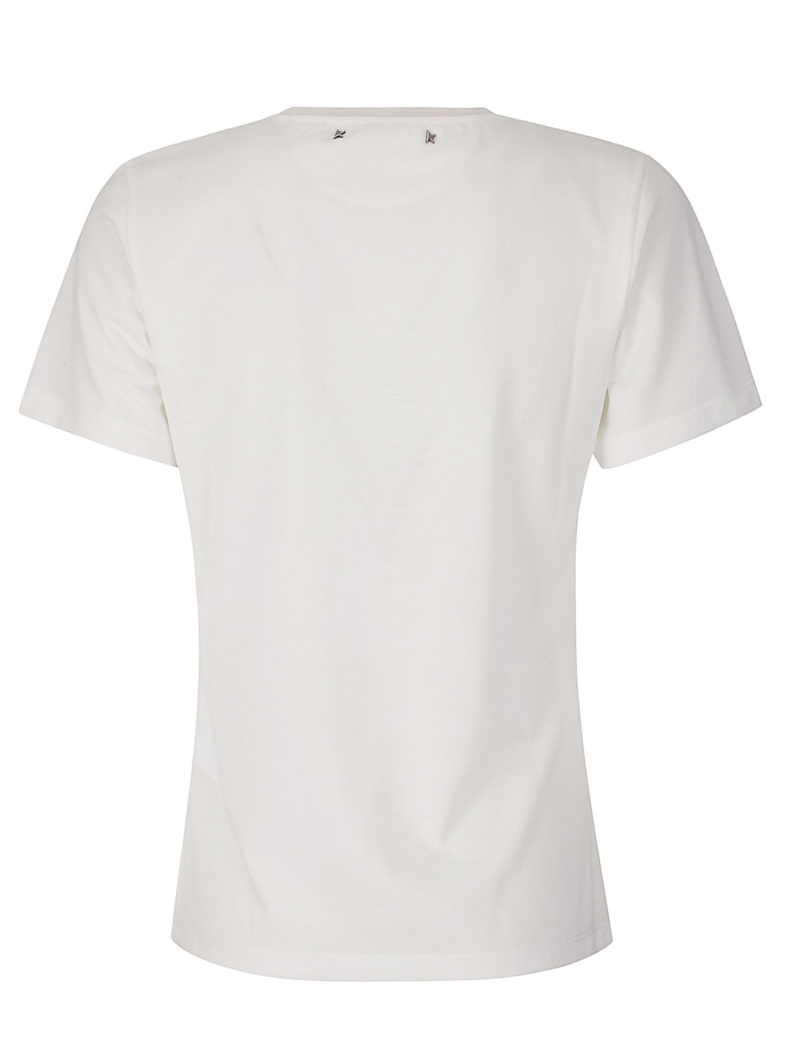 Camiseta de cuello redondo, manga corta, estampado tono sobre tono en la parte delantera, corte ajustado.