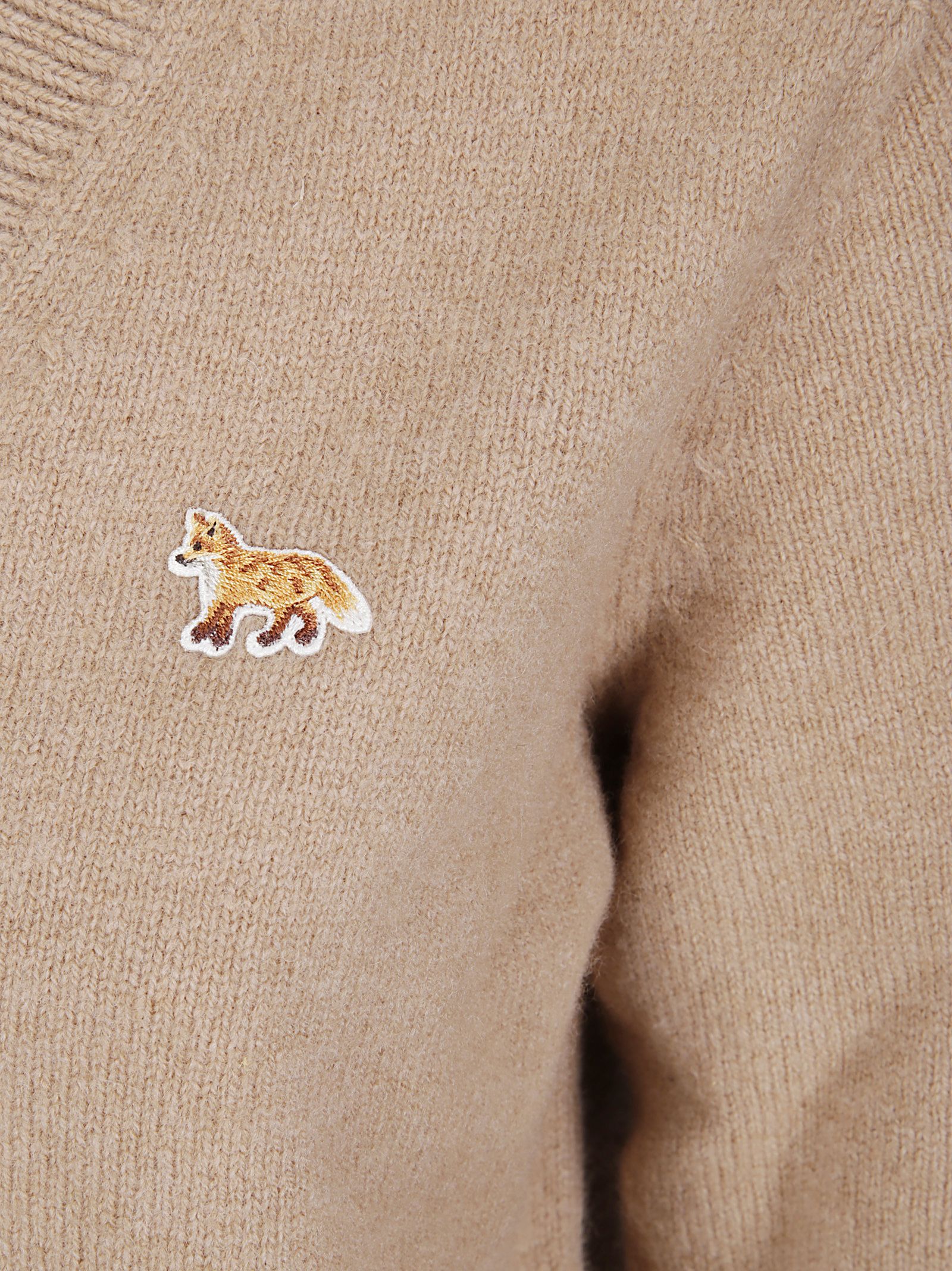 Cardigan realizzato in morbido filato di lana d'agnello, impreziosito da patch Baby Fox sul petto, scollo a V, chiusura con bottoni e finiture a costine, vestibilità slim.