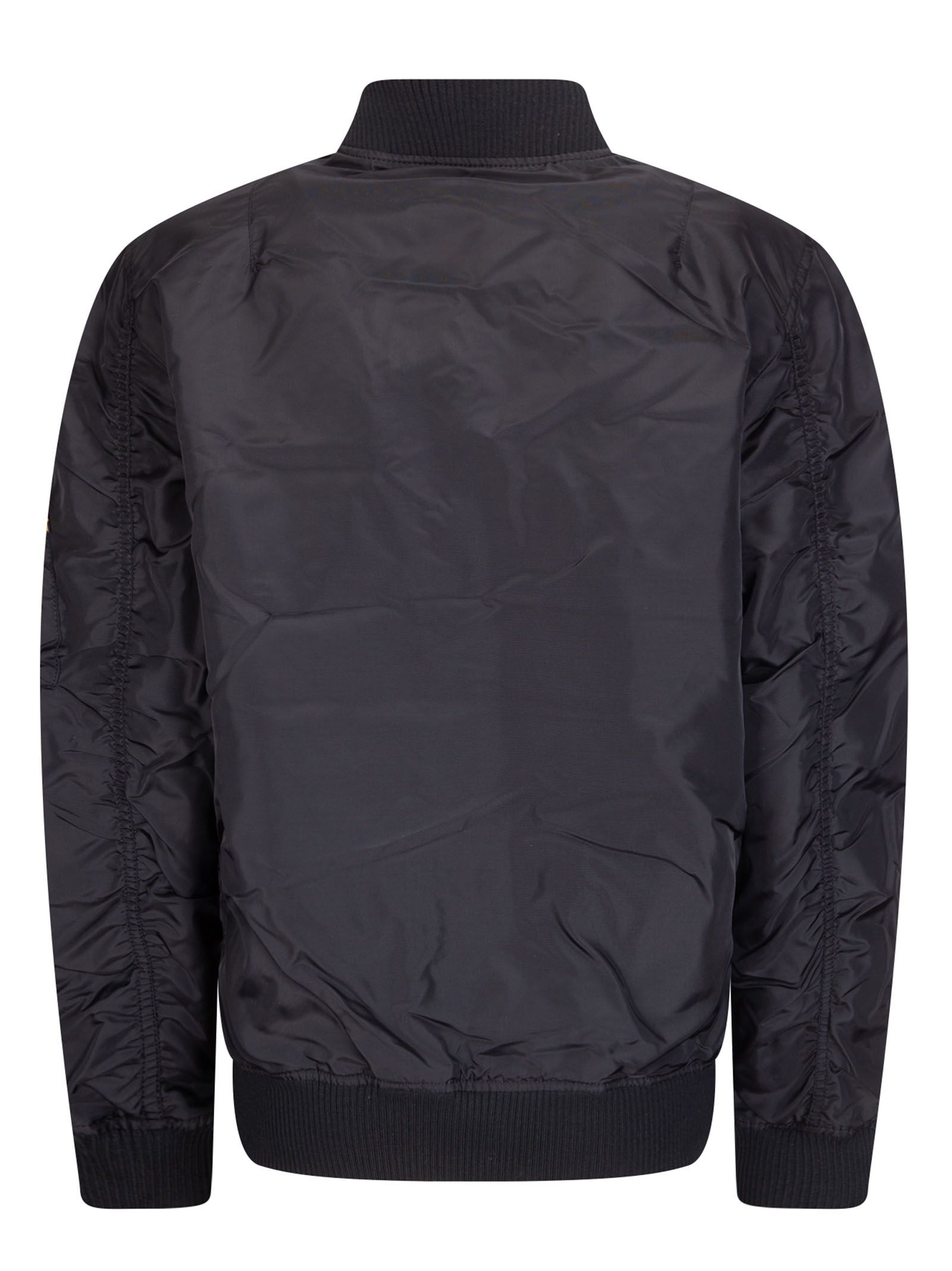 Chaqueta bomber de nailon con cierre de cremallera frontal y bolsillos abotonados.