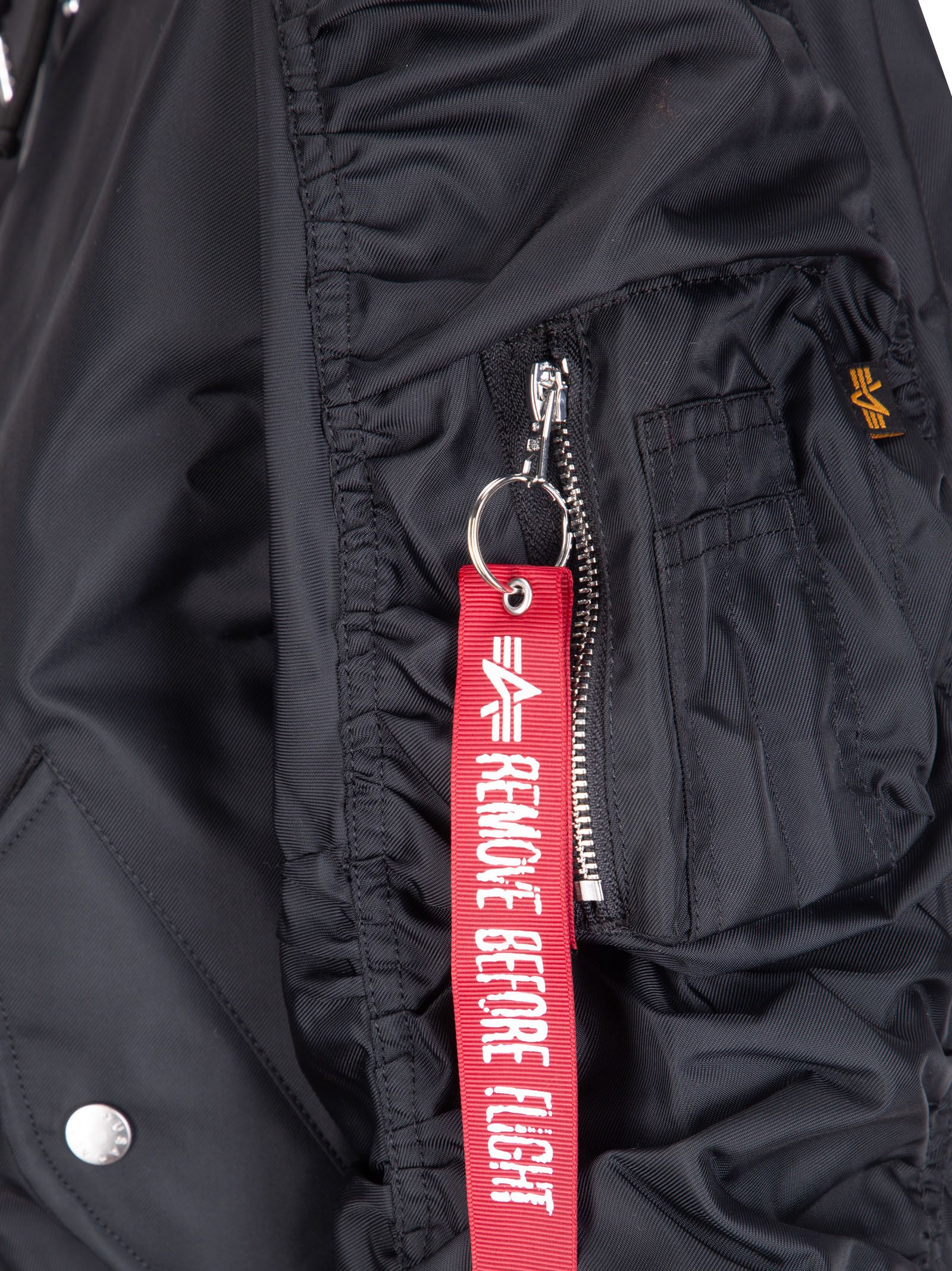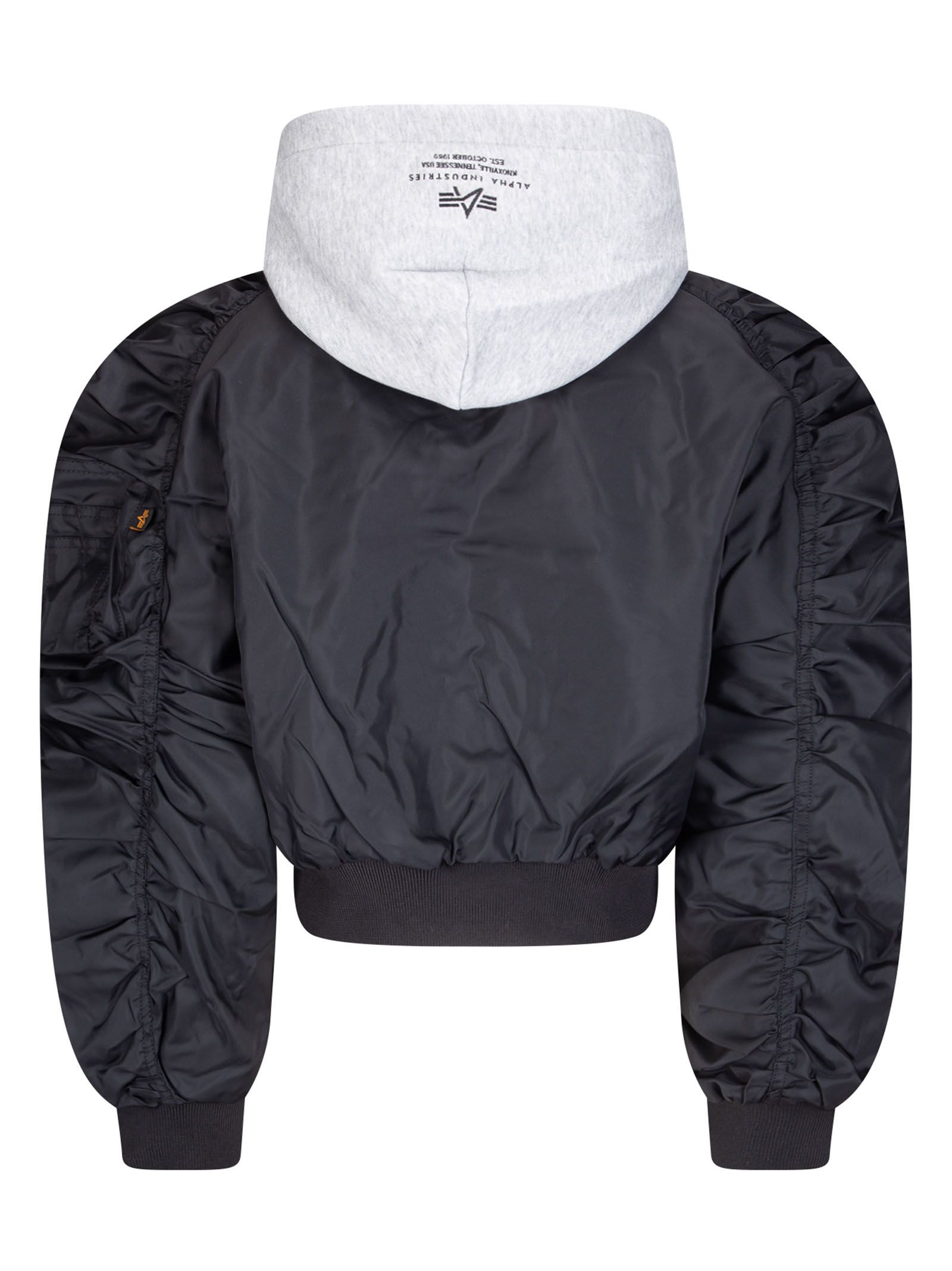 Chaqueta bomber de nailon con cierre de cremallera frontal y bolsillos abotonados. Capucha de algodón extraíble.