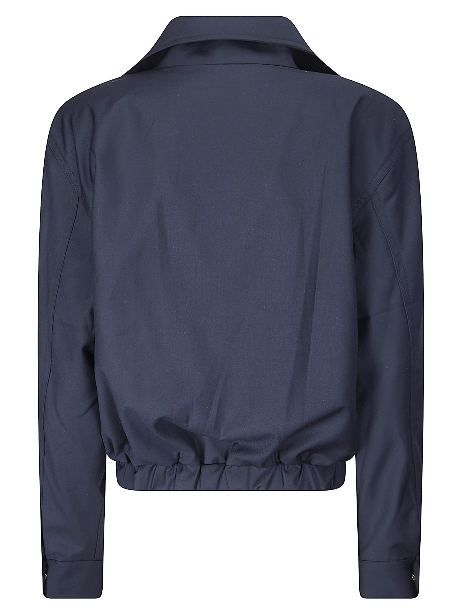 Giacca Bomber dal taglio classico, chiusura con zip doppio cursore, orlo elasticizzato, vestibilità oversized, top monospalla