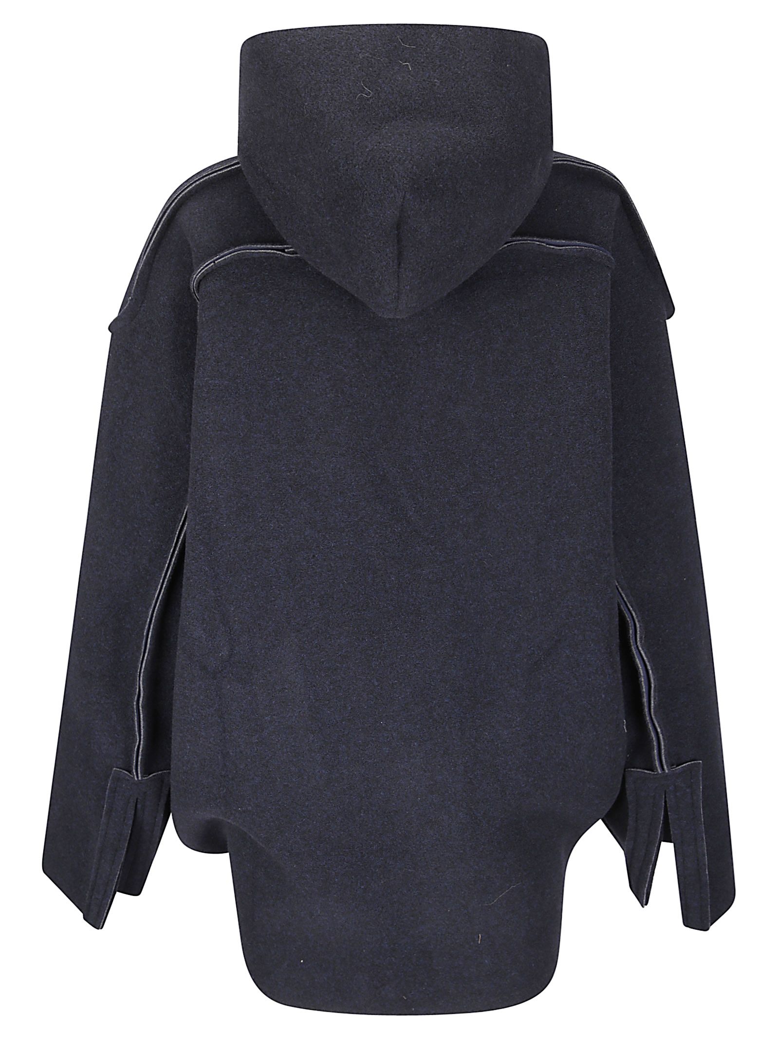 Chaqueta poncho de gran tamaño con capucha y mangas con cordón, hombros caídos, cortada a láser.
