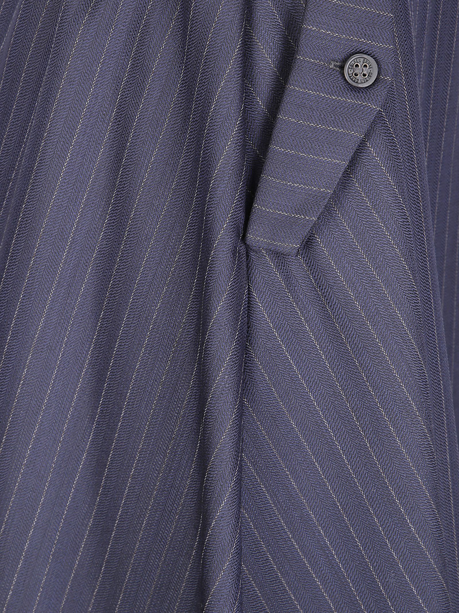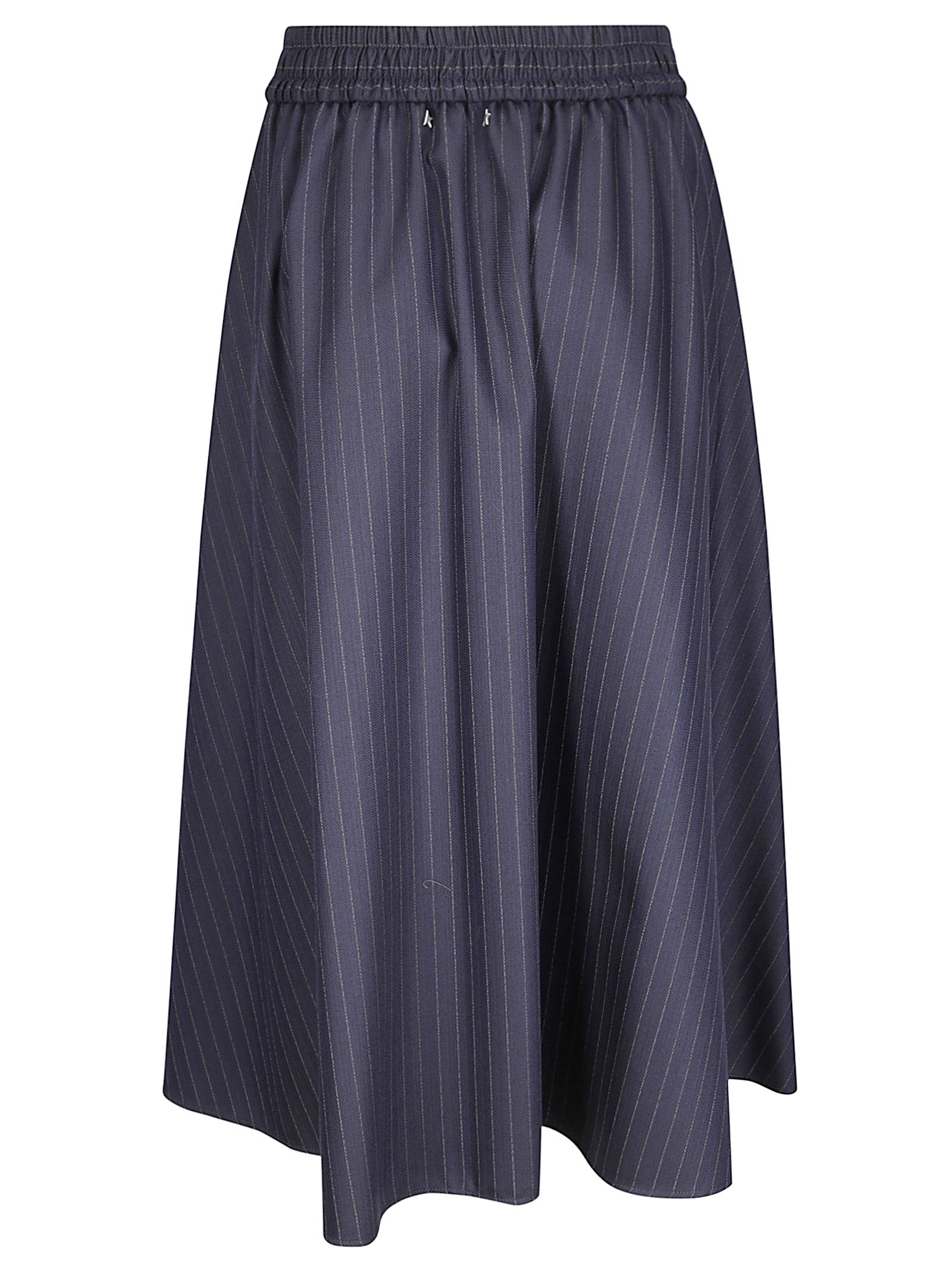 Falda larga de raya diplomática, estilo línea A, bolsillos abotonados, cintura elástica en la parte posterior, bajo acampanado.