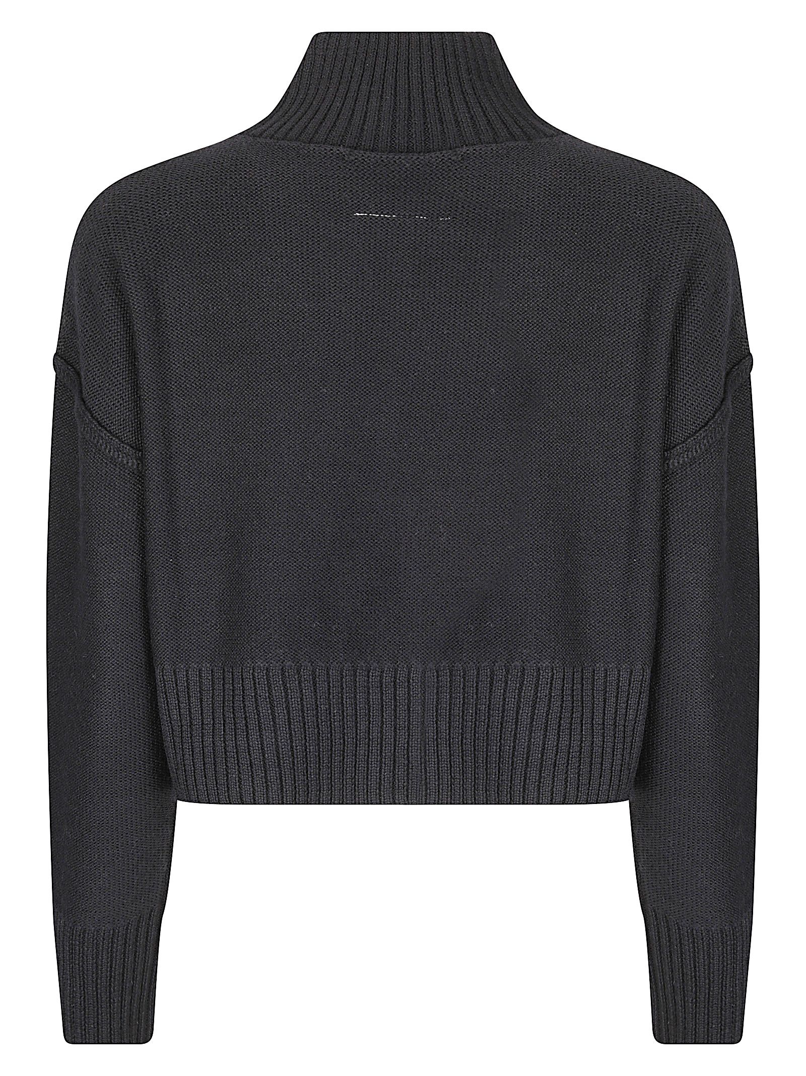 Jersey corto con corte y cuello alto, tejido mezcla de lana virgen, mangas largas, costuras en contraste.