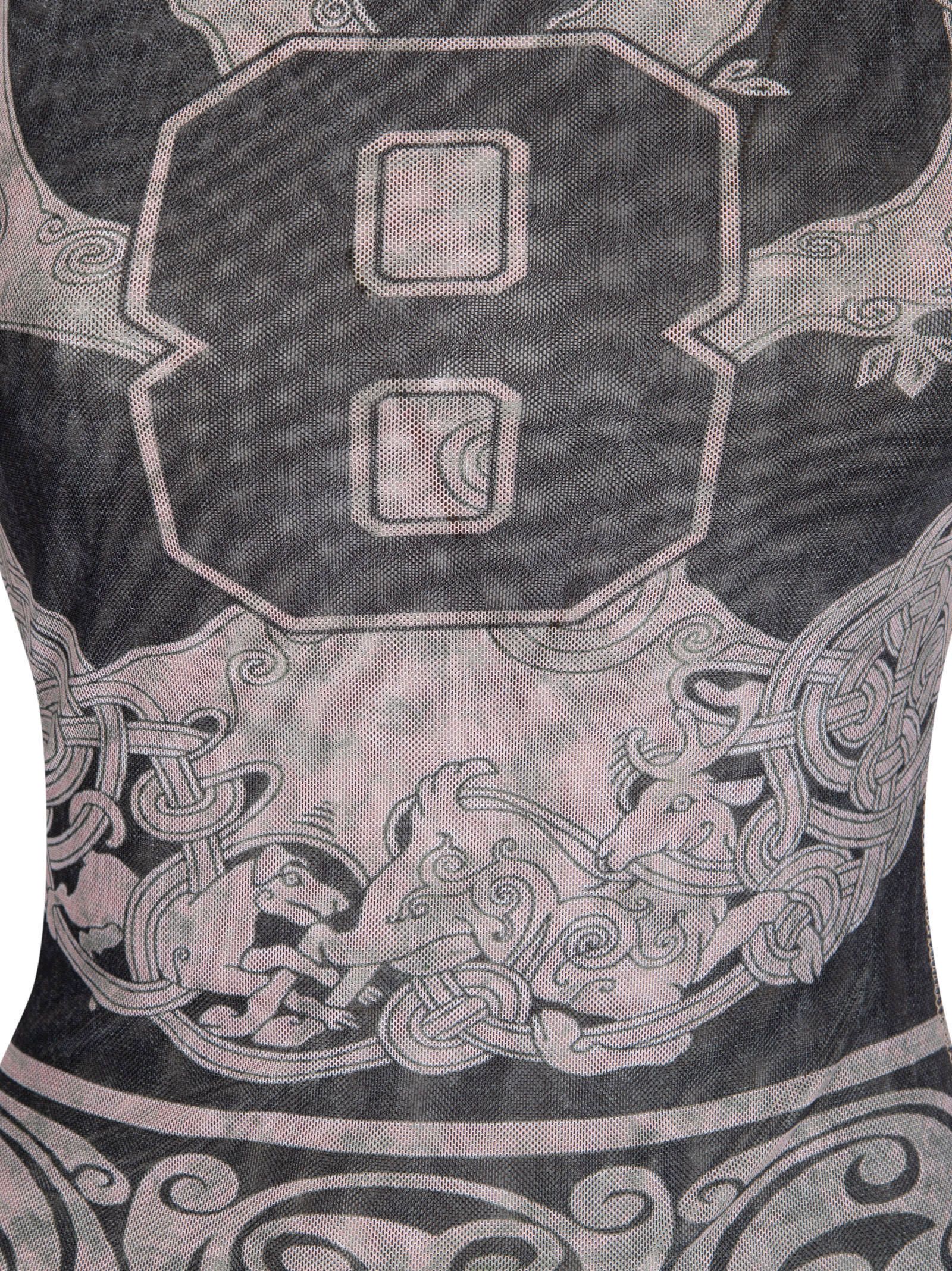 Maxi dressi slim fit in mesh con stampa, cuciture a contrasto, accollato, sottoveste leggera.