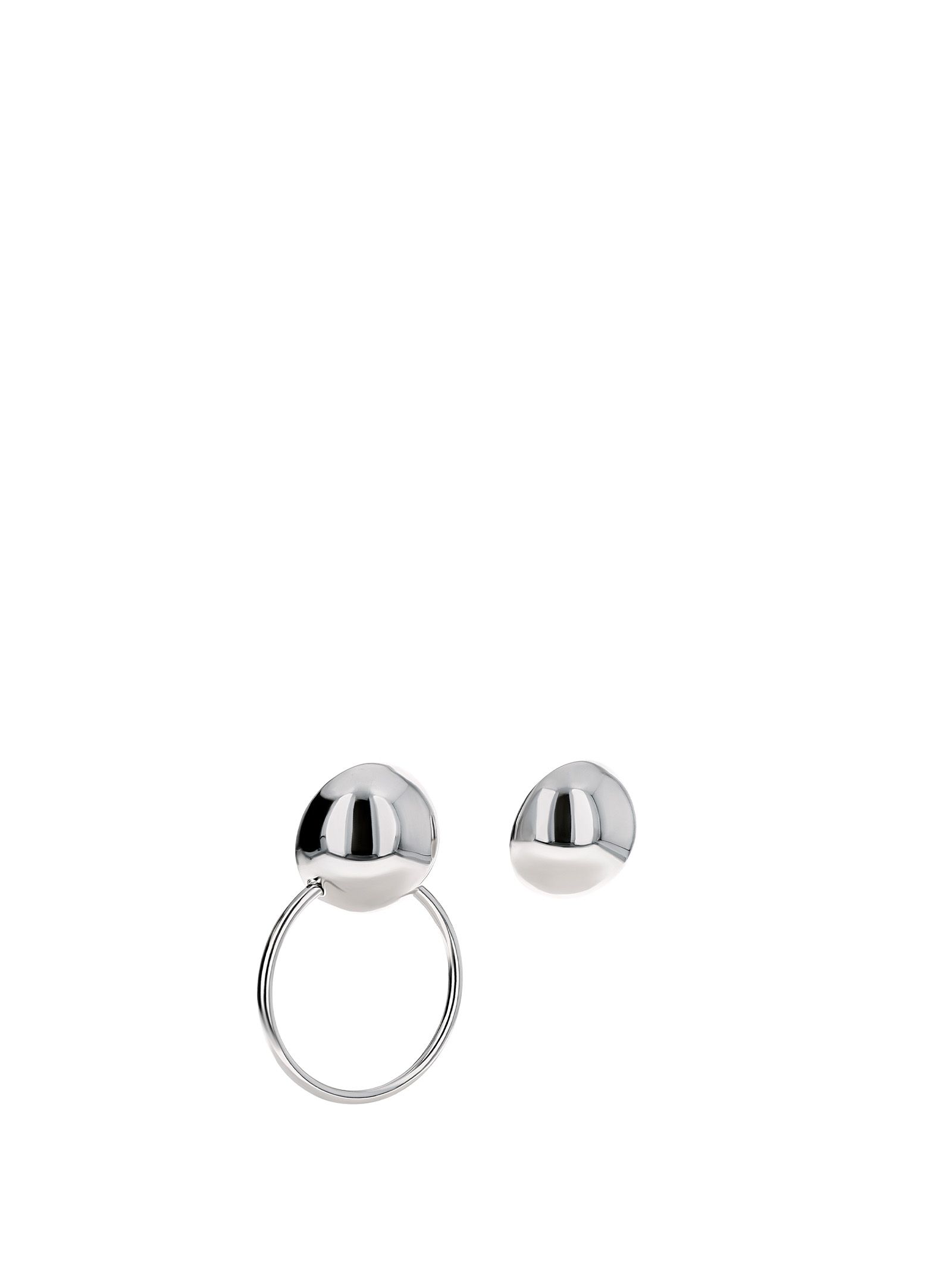 Paire de boucles d'oreilles asymétriques, grande sphère et sphère avec cercle, matériau léger, fermoir papillon.
