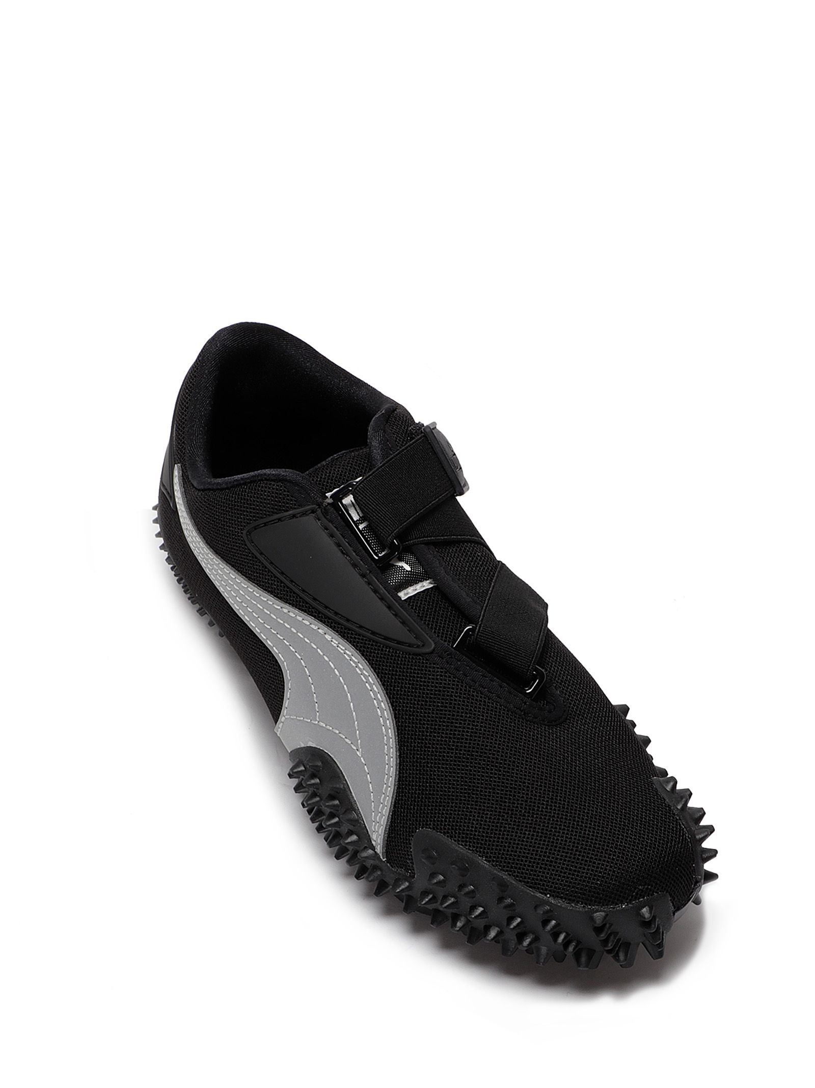 Baskets avec laçage sur le devant, fermeture velcro, crampons en caoutchouc sur la semelle, détail logo.