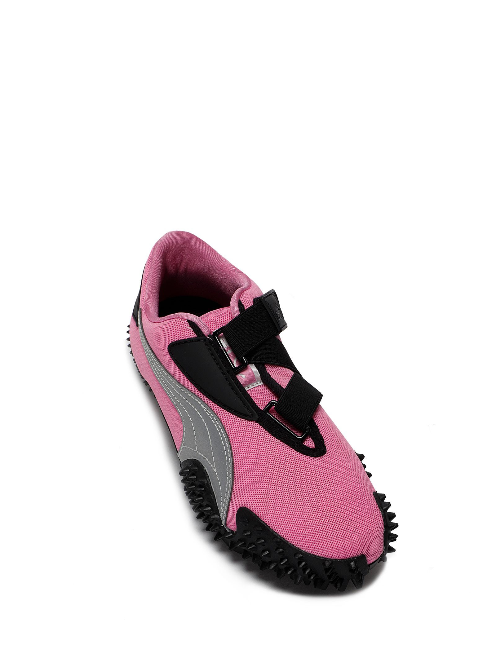 Baskets avec laçage sur le devant, fermeture velcro, crampons en caoutchouc sur la semelle, détail logo.