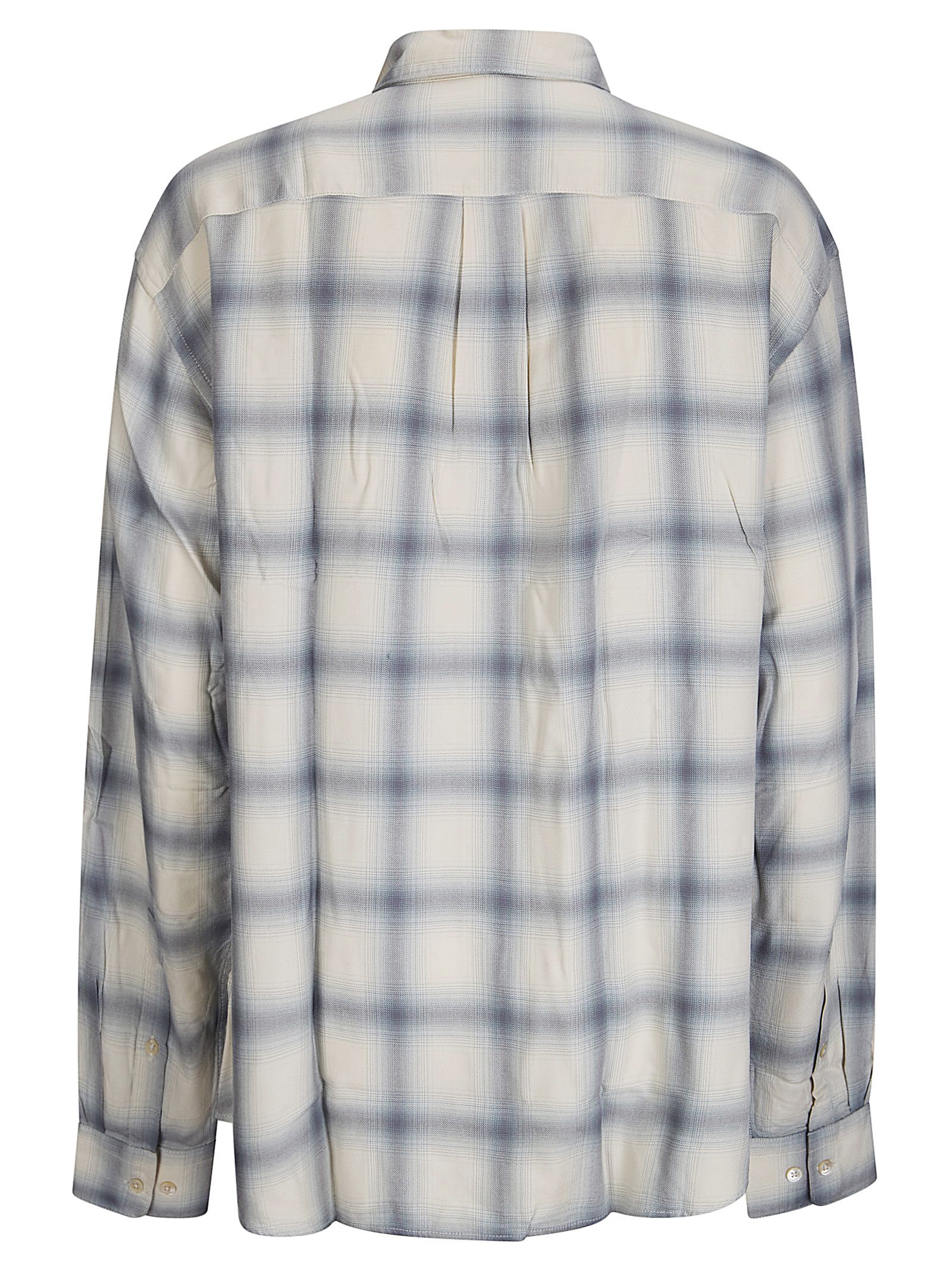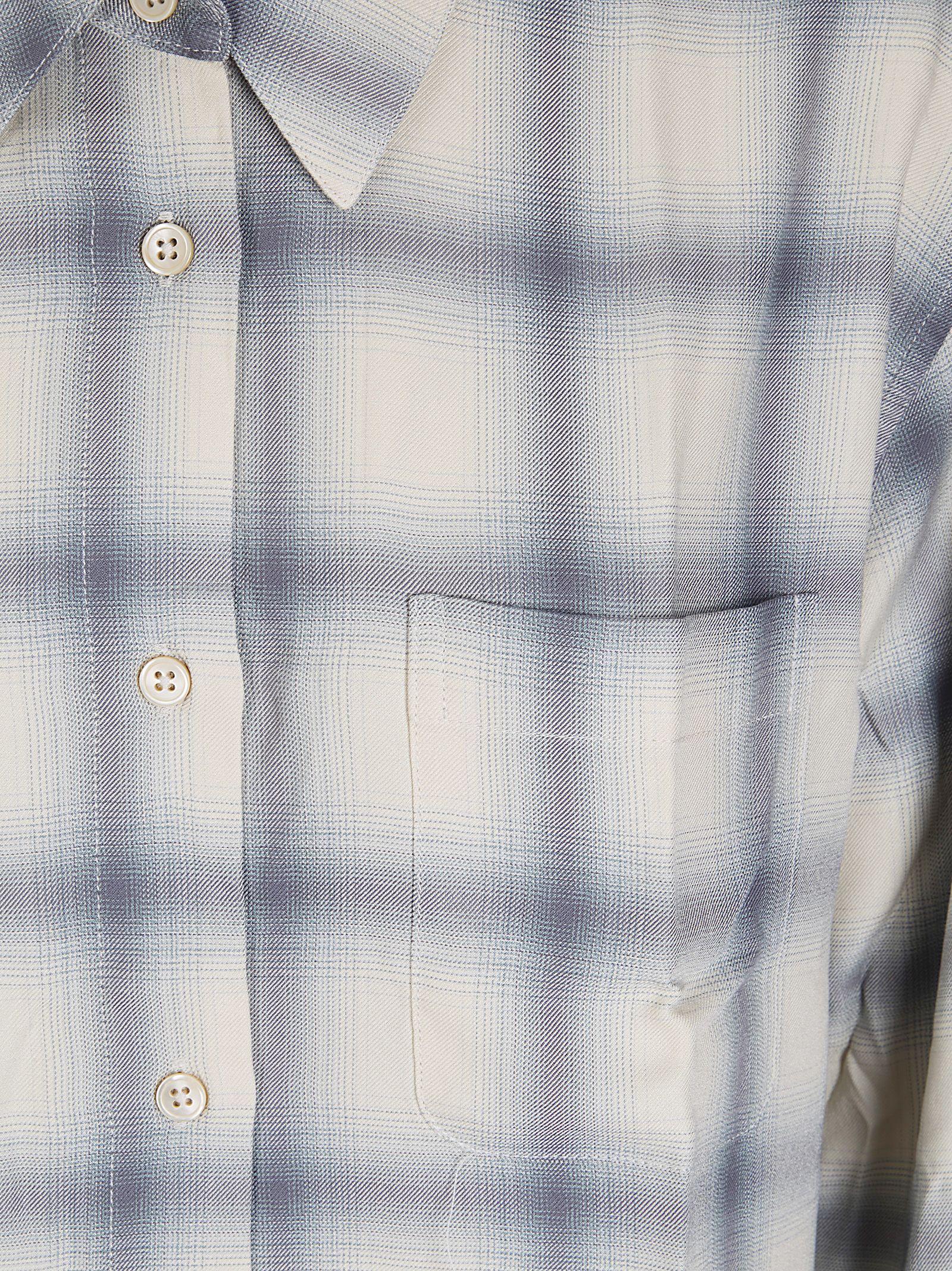 Camicia con taschino sul petto con motivo a quadri color avorio, chiusura con bottoni, maniche lunghe con polsini abbottonati.