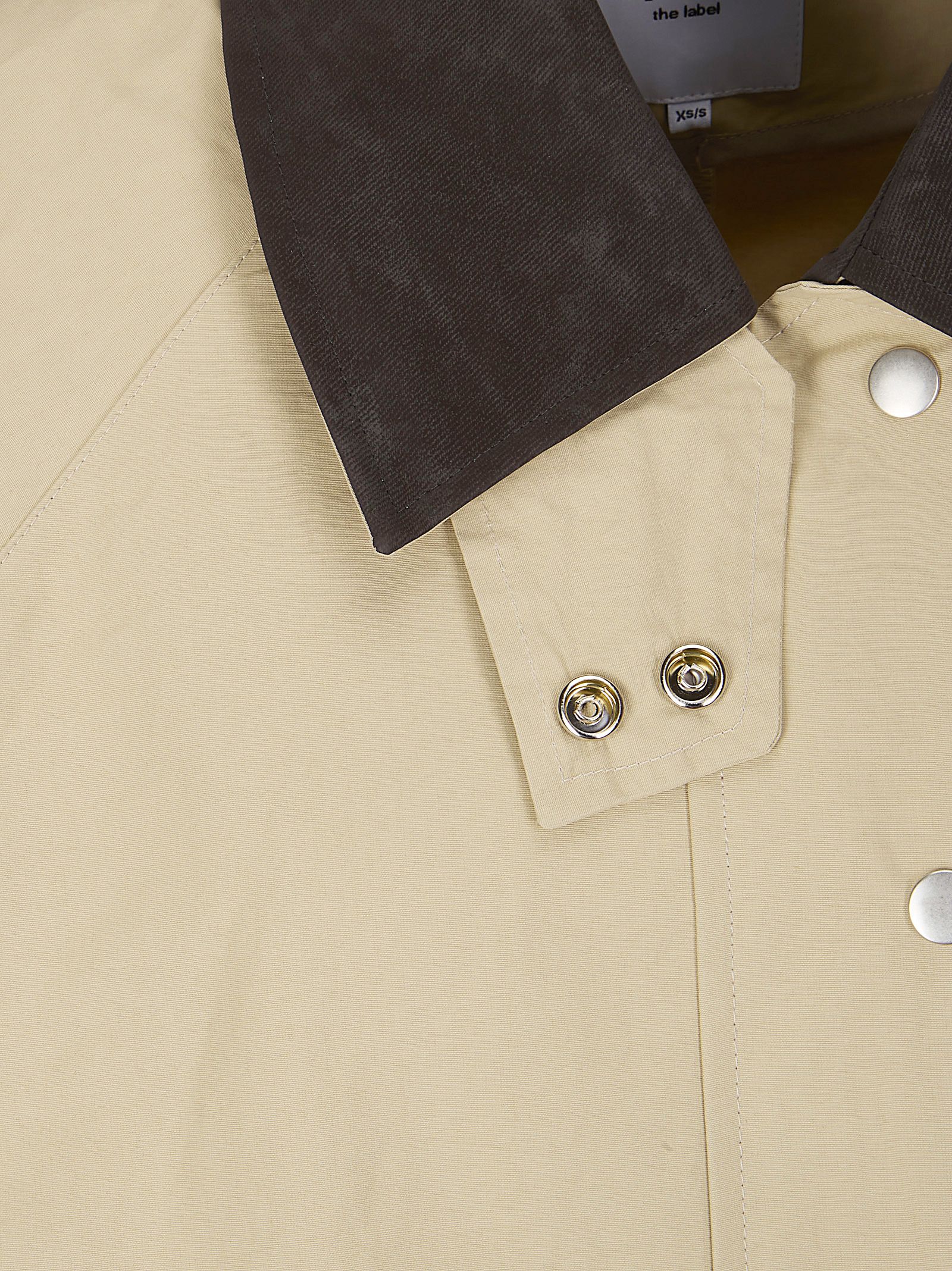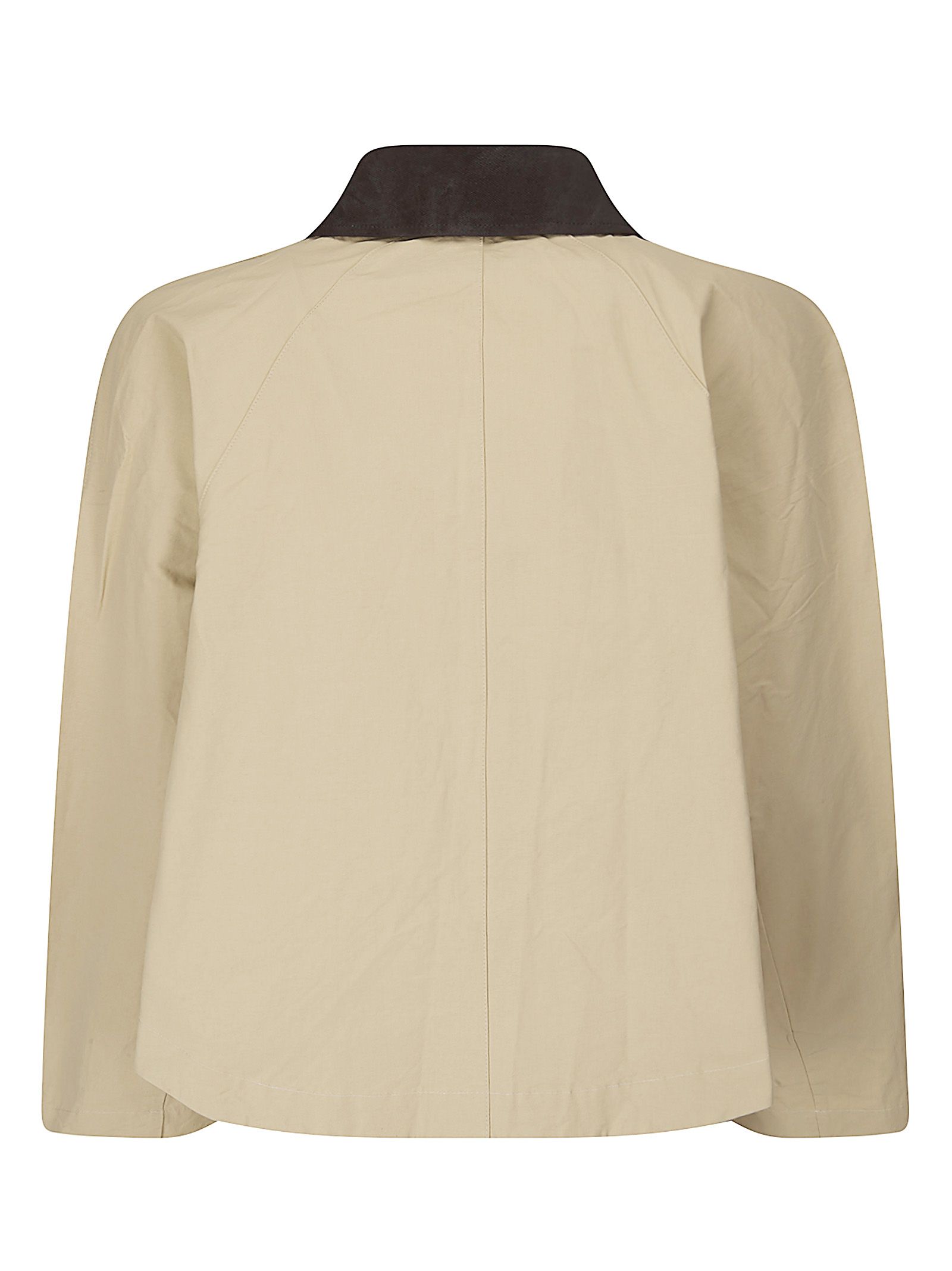Giacca con chiusura frontale con cerniera e bottoni automatici metallici, colletto a contrasto, taglio leggermente svasato