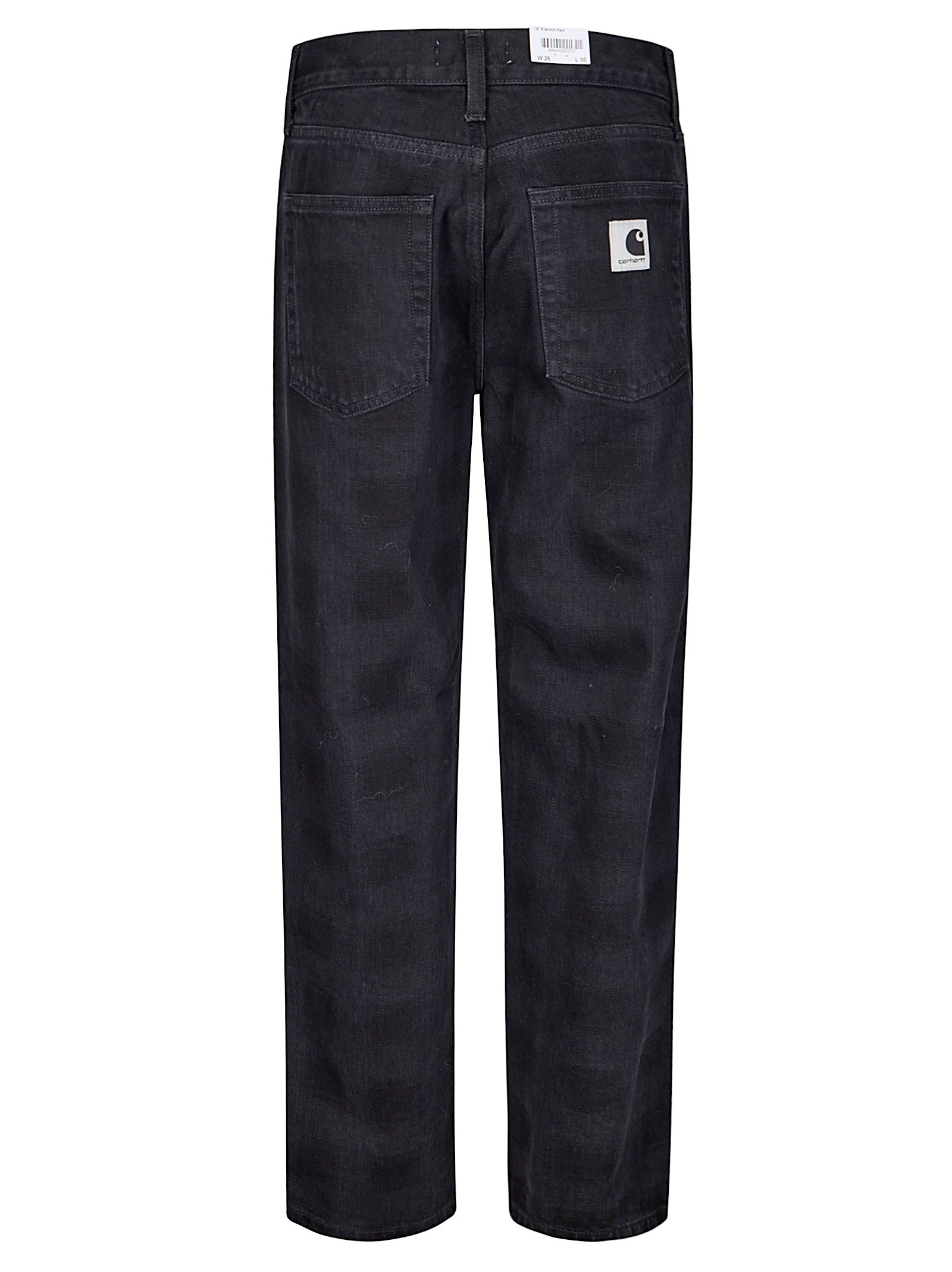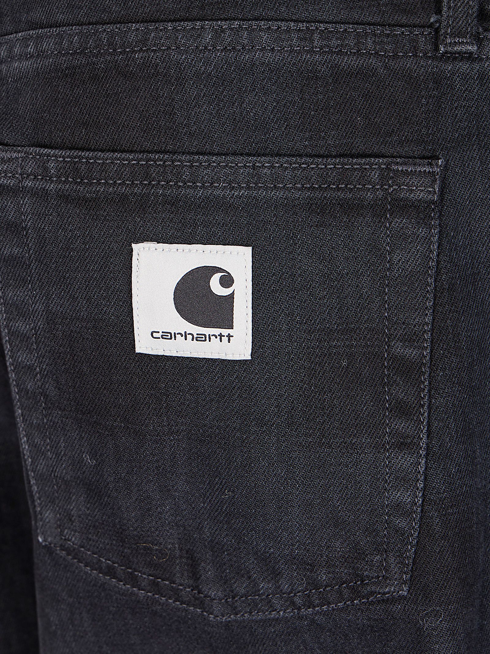 Jeans cinque tasche, vestibilità comoda, chiusura frontale con bottone e zip, etichetta logo tasca posteriore.