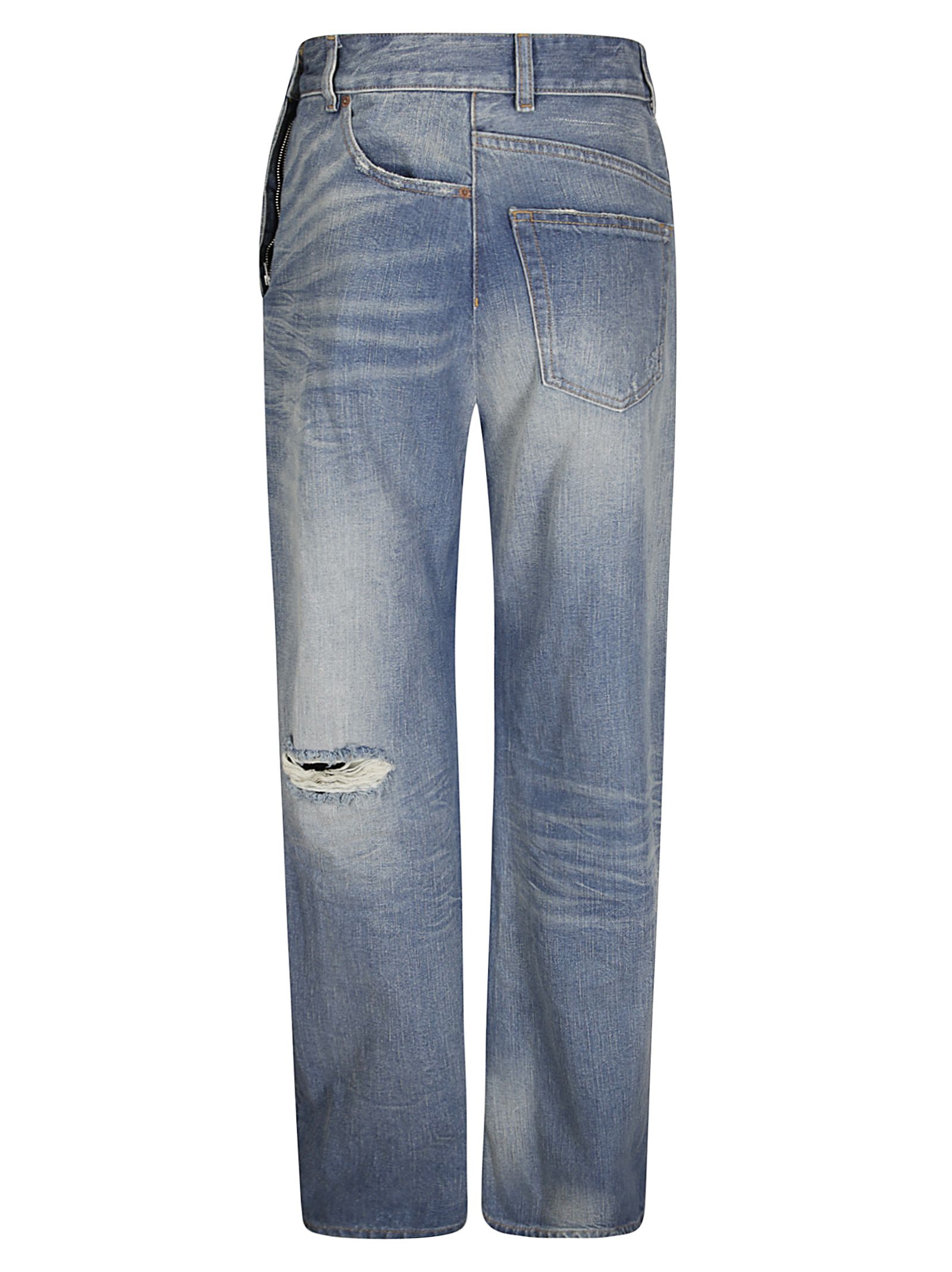 Jean avec fermeture latérale avec boutonnage et zip, deux poches plaquées devant et poche arrière profilée, coupe douce et confortable