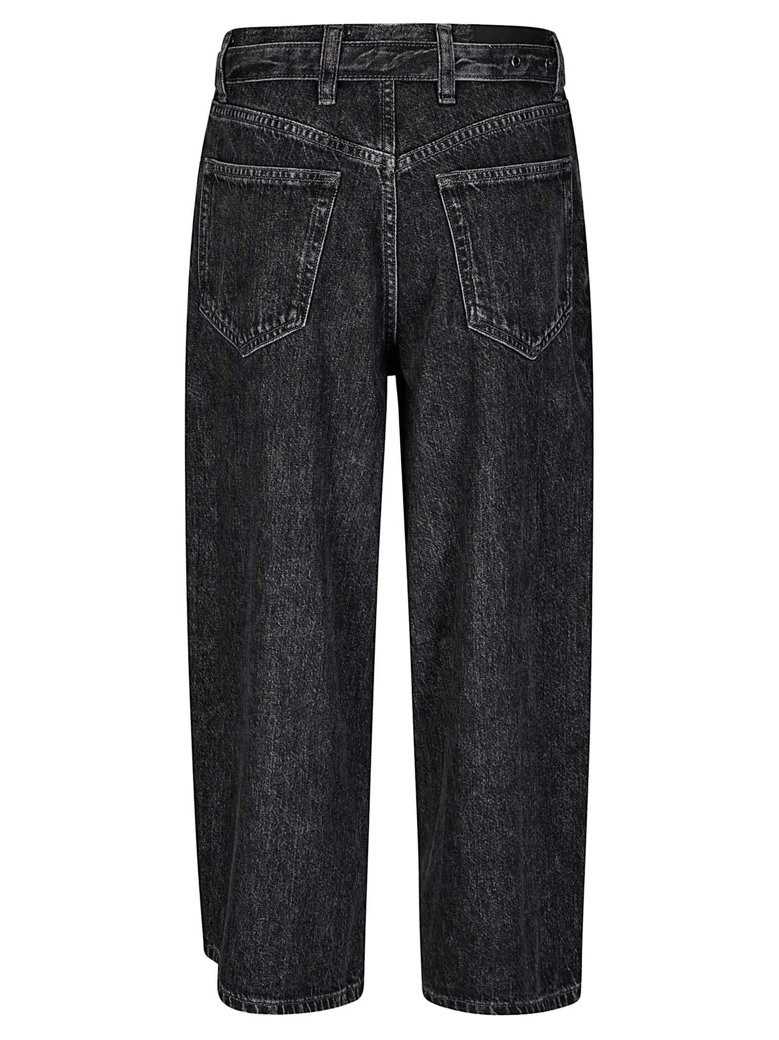 Jeans a vita alta, vestibilità comoda e gambe curve, chiusura frontale con zip e bottone, modello a cinque tasche, passanti per cintura e cintura sottile abbinata.