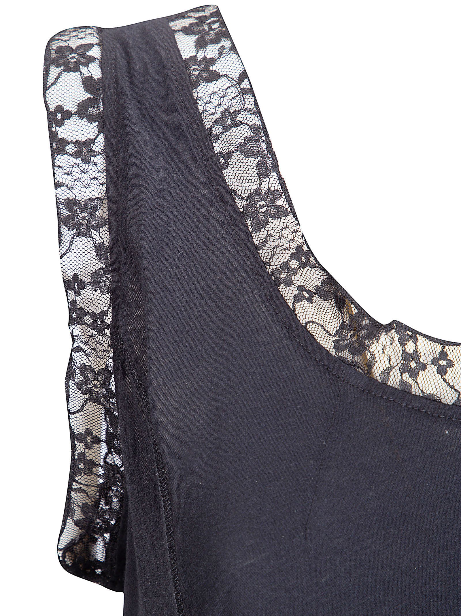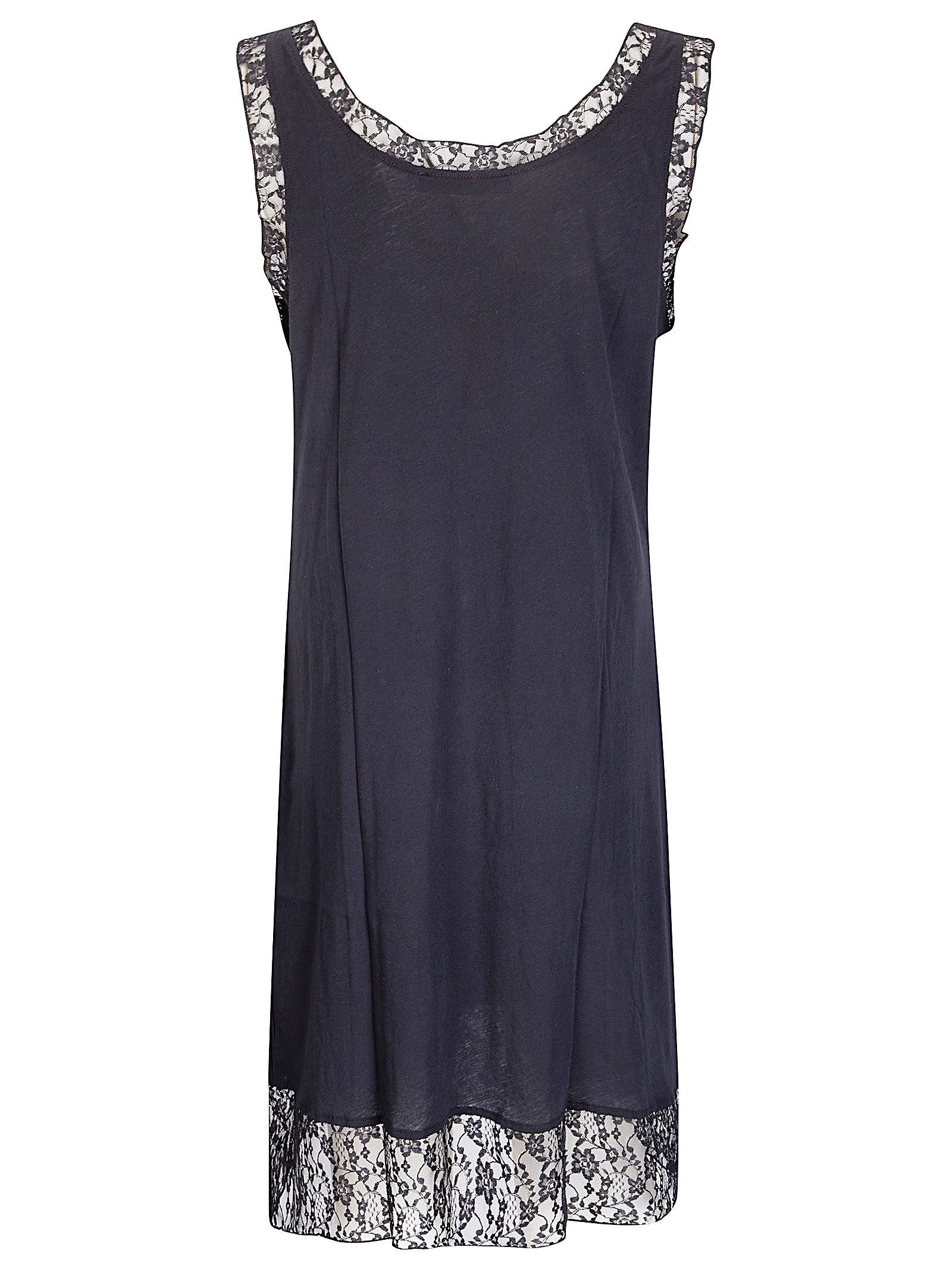 Abito in jersey di cotone, scollo rotondo, silhouette a trapezio e pannelli a contrasto sullo scollo del giromanica e sull'orlo inferiore.