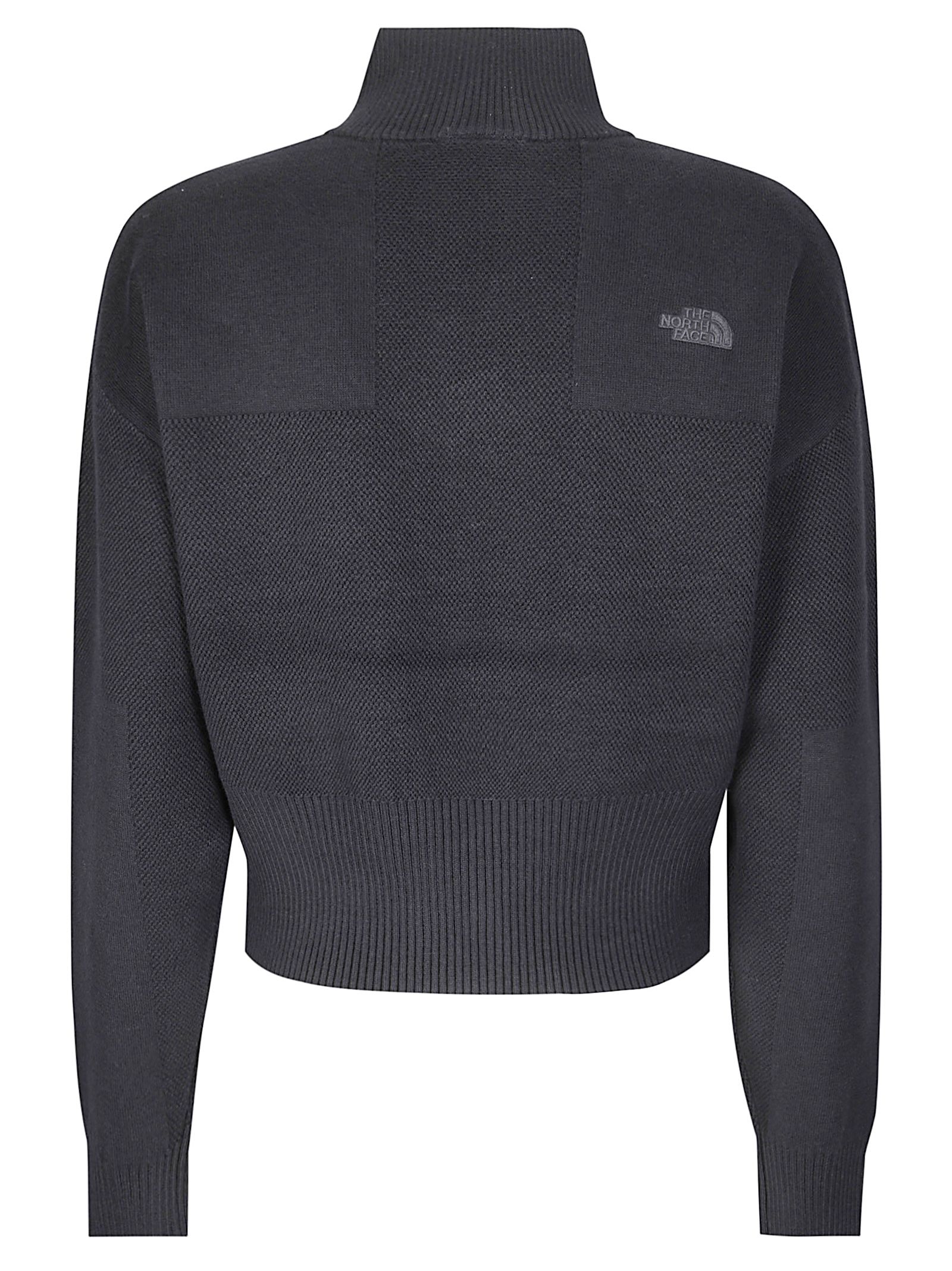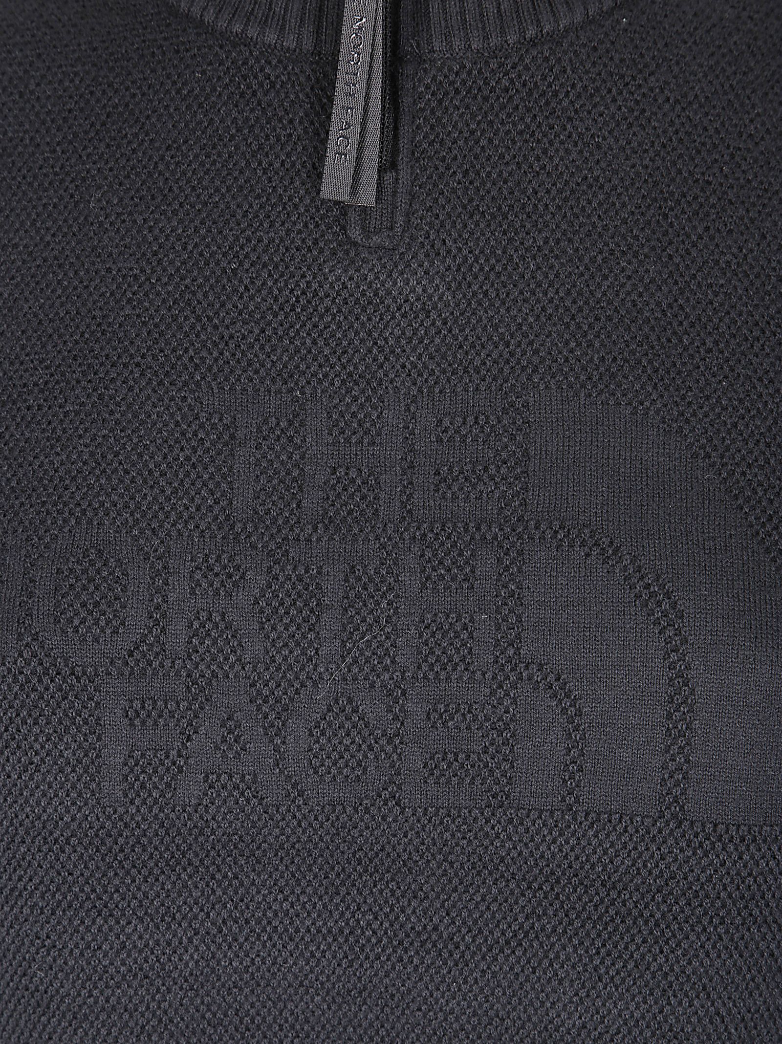 Maglione half zip con colletto alto in cotone e lana, logo frontale, fit cropped, tessuto morbido.