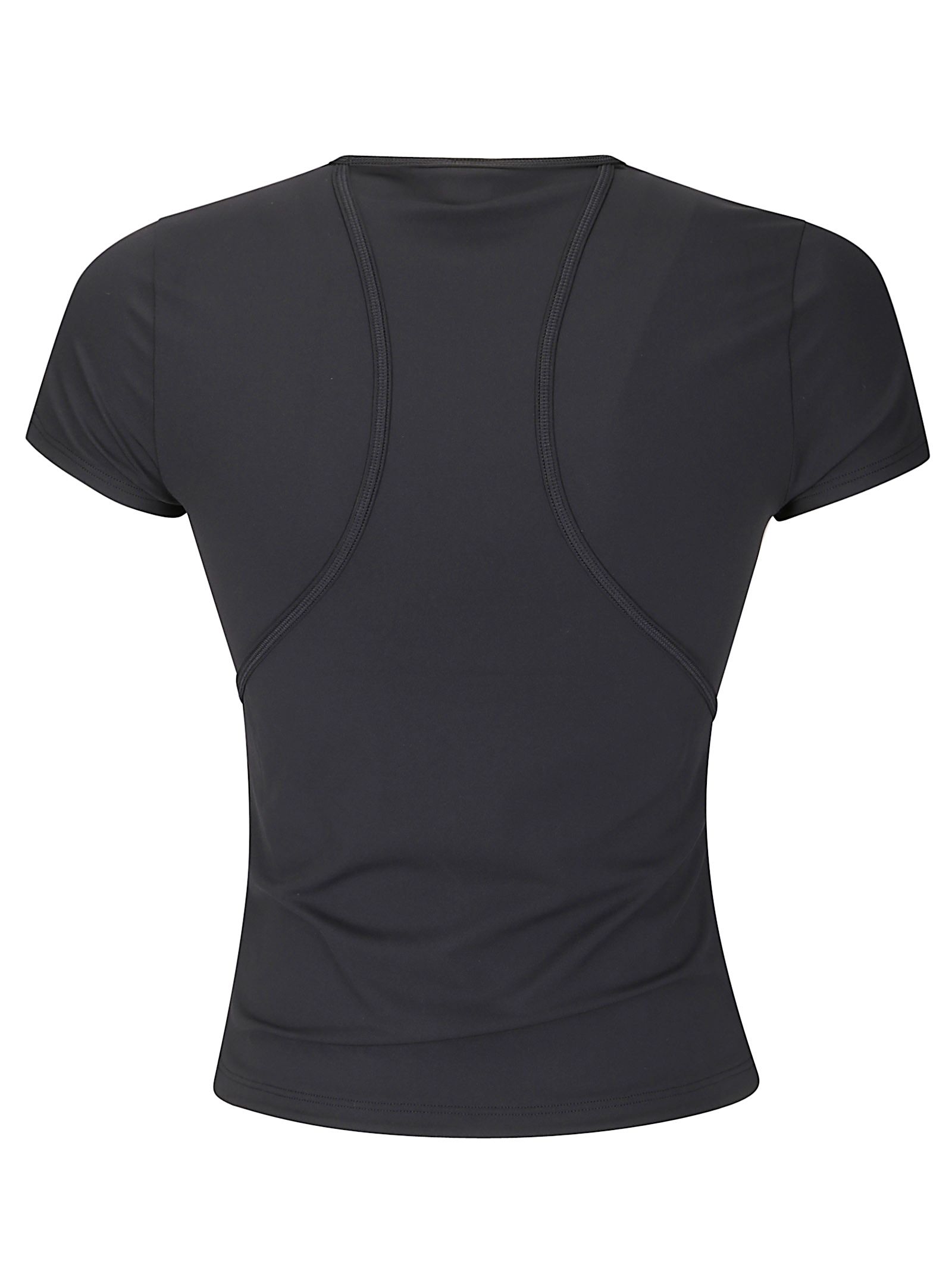 T-shirt col rond, manches courtes, coupe slim, ourlet arrondi.
