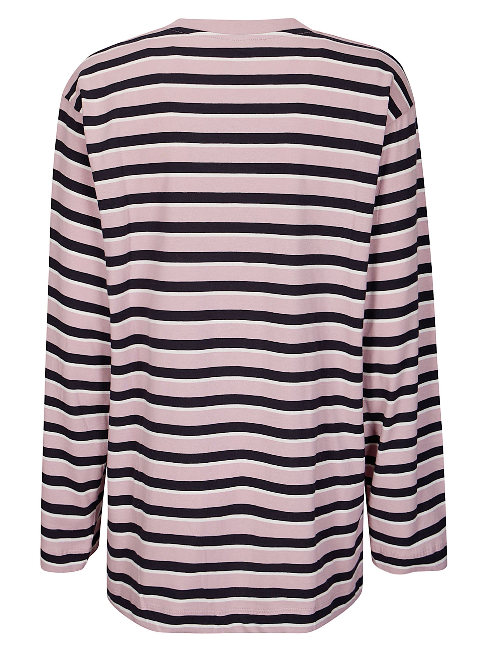 T-shirt girocollo, maniche lunghe, vestibilità ampia, logo stampato sul petto, realizzata in morbido cotone biologico.