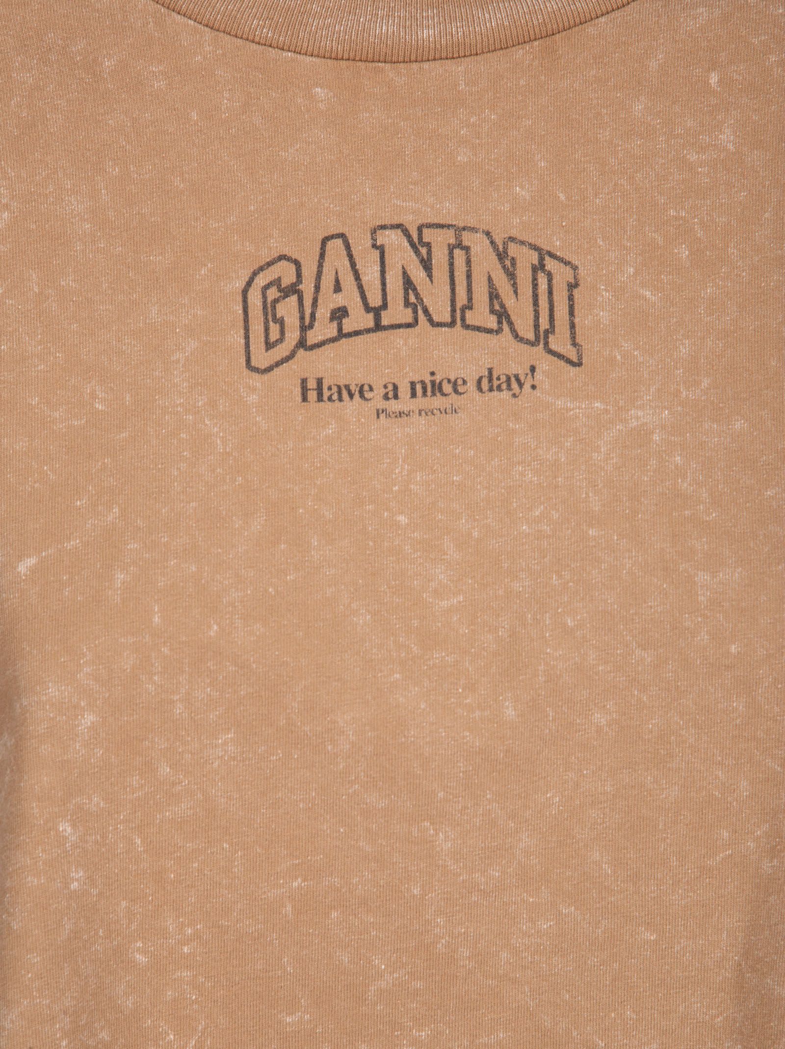 T-shirt à col rond, manches longues, logo GANNI sur le devant, coupe oversize.