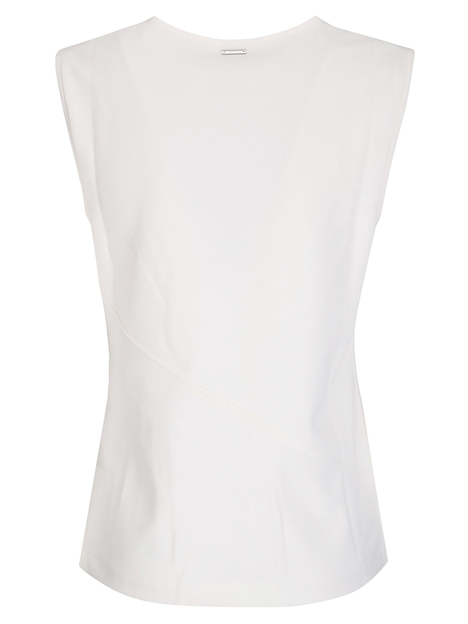 Top senza maniche, scollo rotondo, tessuto elasticizzato, design a tinta unita.