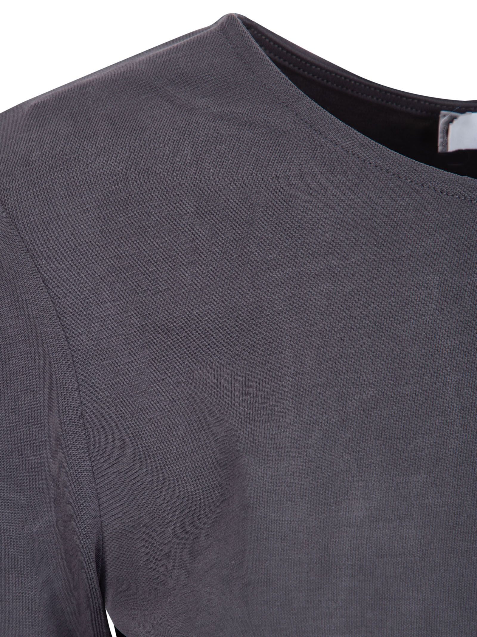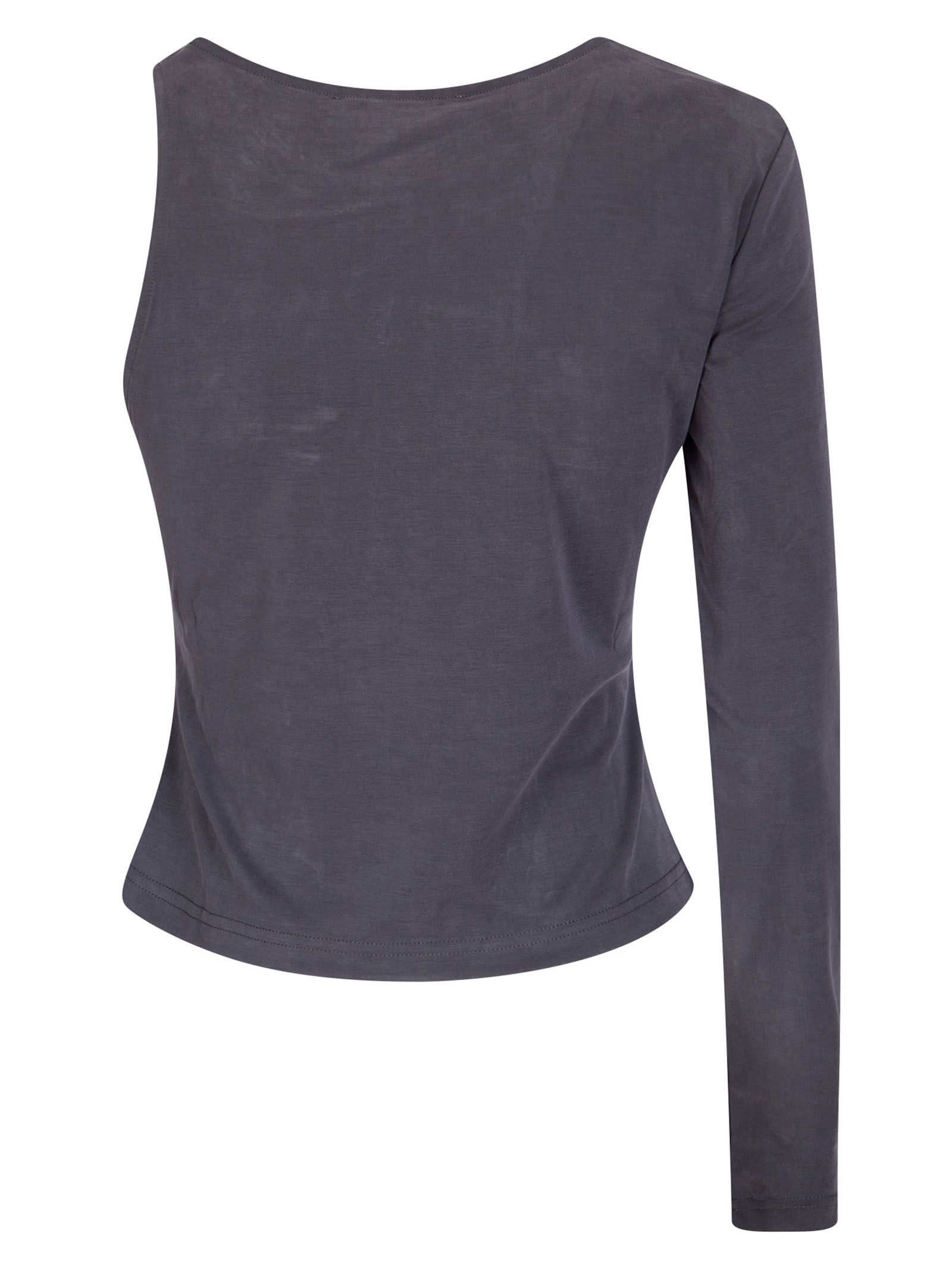 Top asymétrique en tissu extensible, boucle logo en acier, coupe ajustée, tissu doux au toucher satiné.