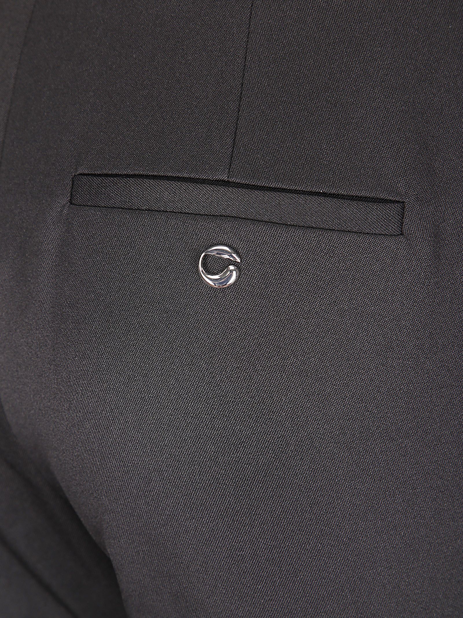 Pantalon en maille côtelée noire avec guêtres, fermeture à crochet et zip, poches passepoilées.