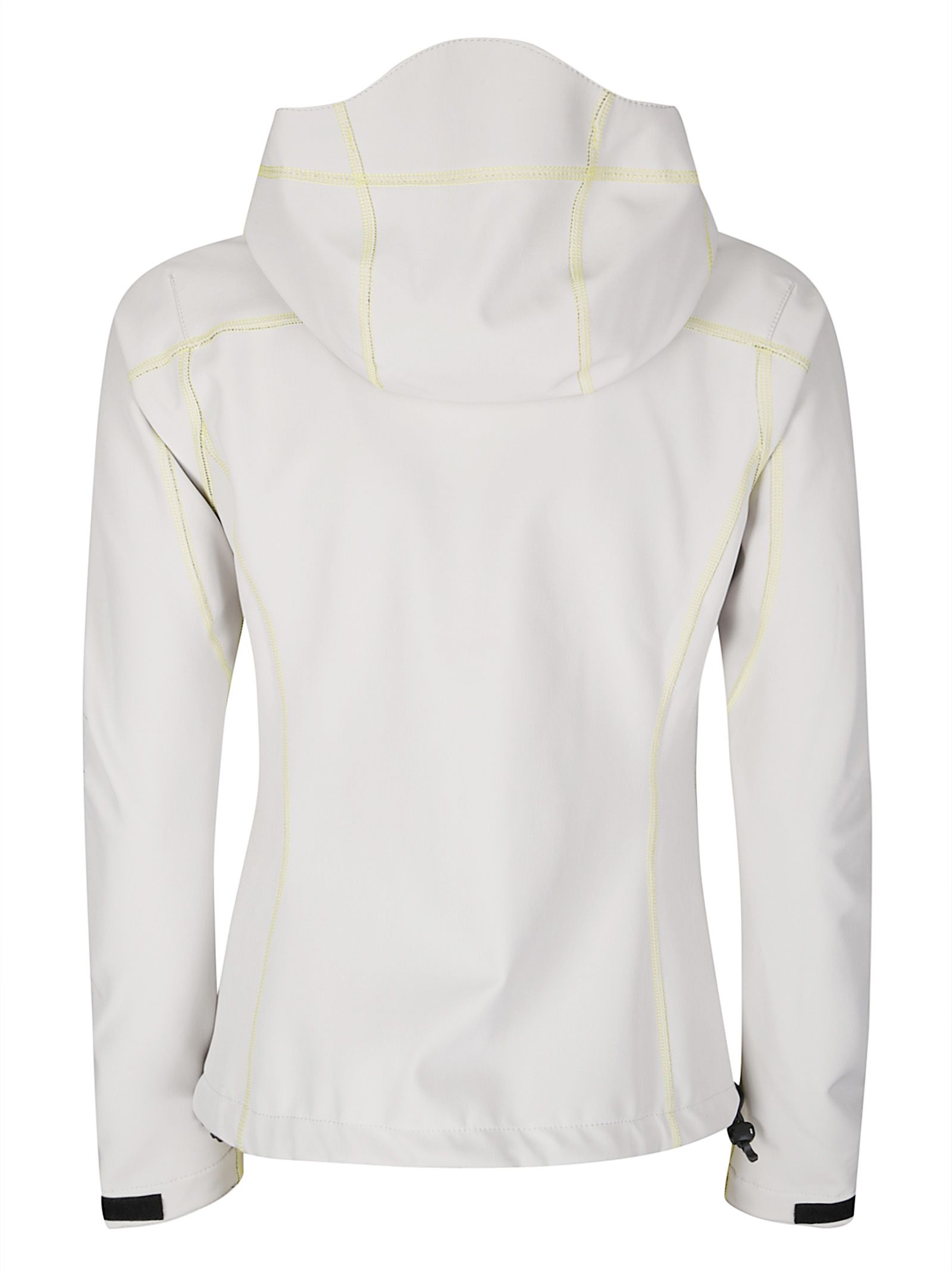 Veste technique adaptée aux climats froids, fermeture zippée, capuche, broderie contrastée.