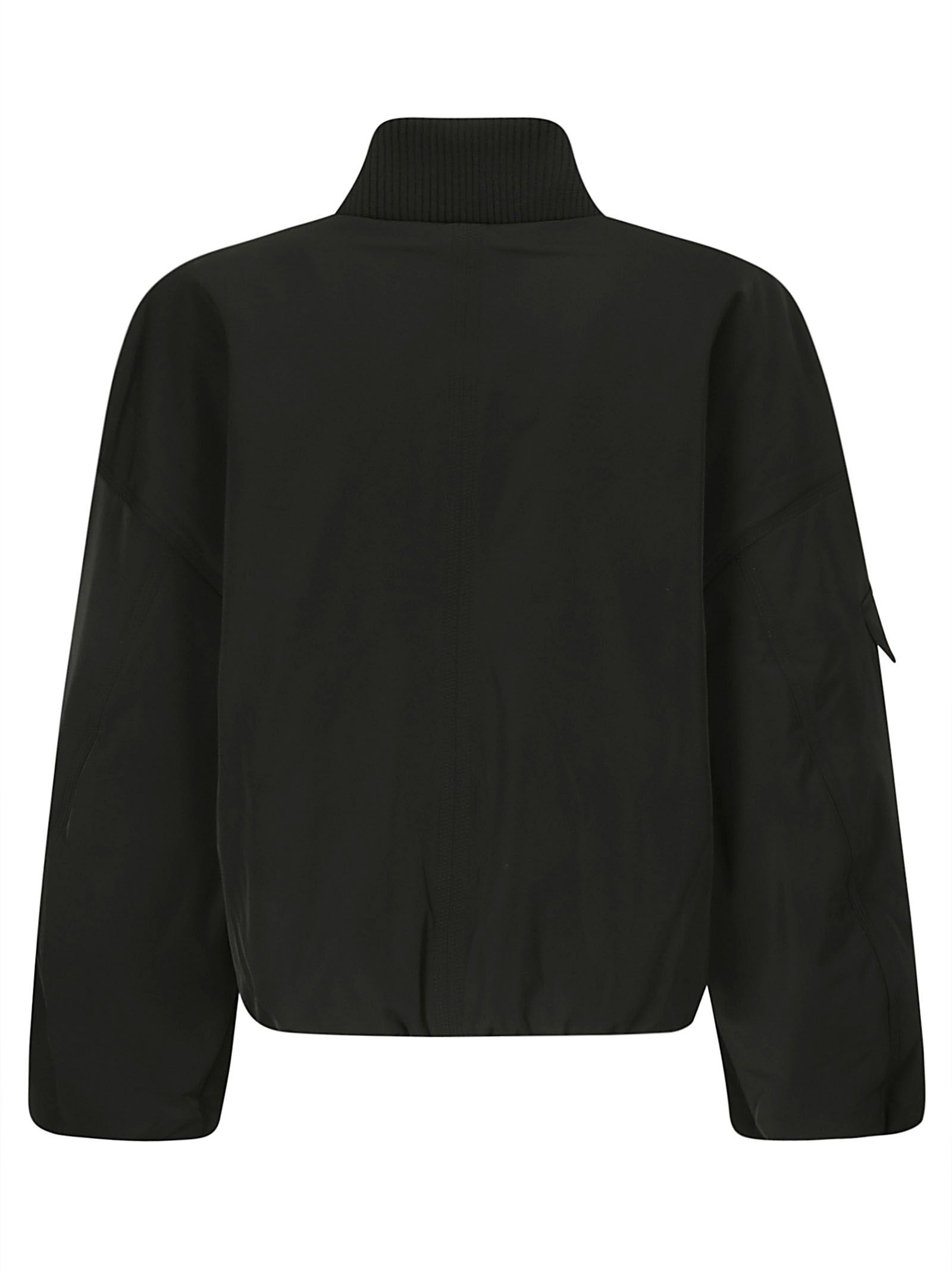 Bomber oversize noir effet matelassé, grandes poches et logo devant, modèle matelassé.