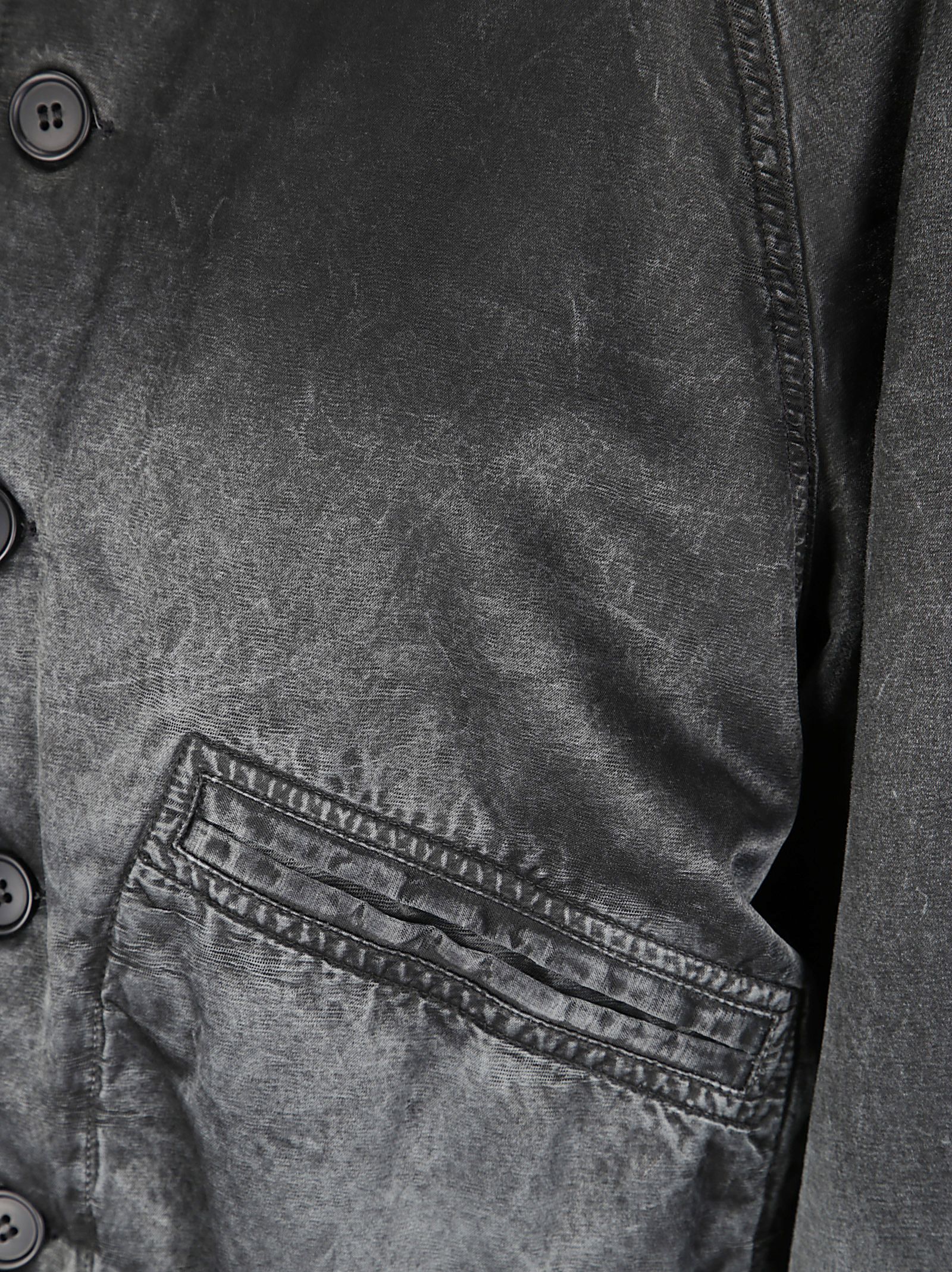 Blouson aviateur, fermeture boutonnée devant, manches raglan, deux poches passepoilées.