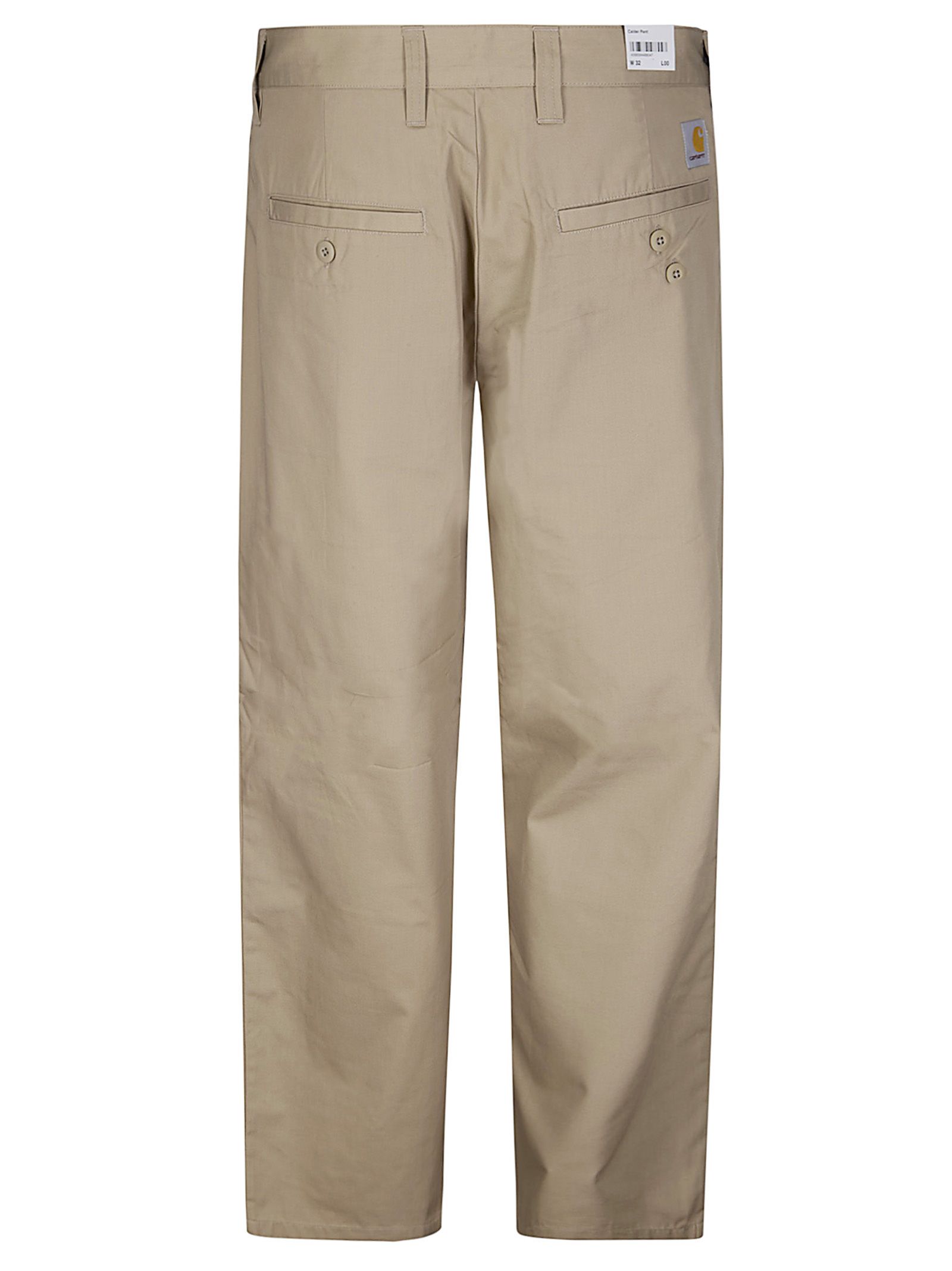 Pantaloni con chiusura con bottone e zip, tasche laterali, tasche posteriori, gamba dritta, logo applicato sul retro.