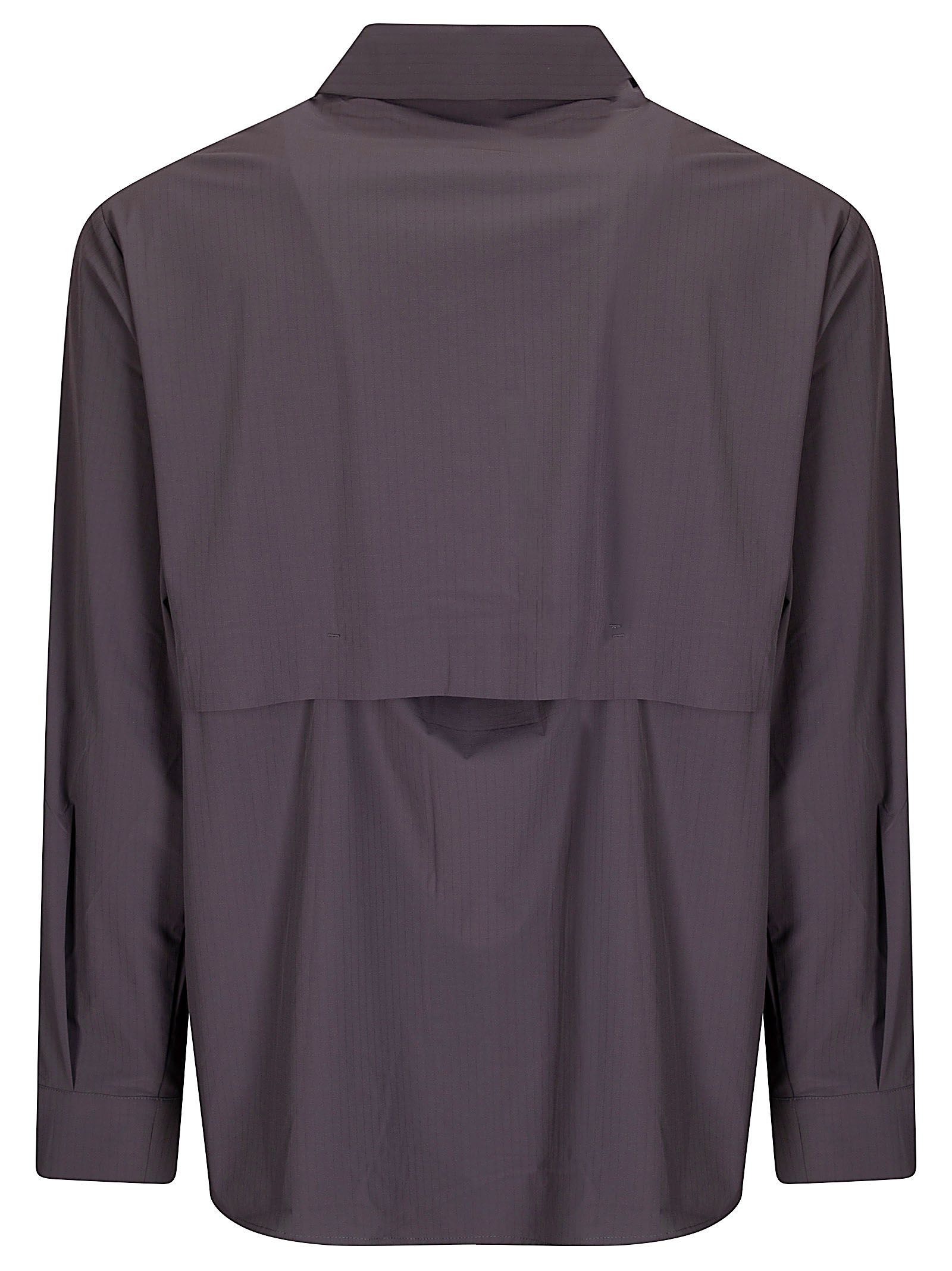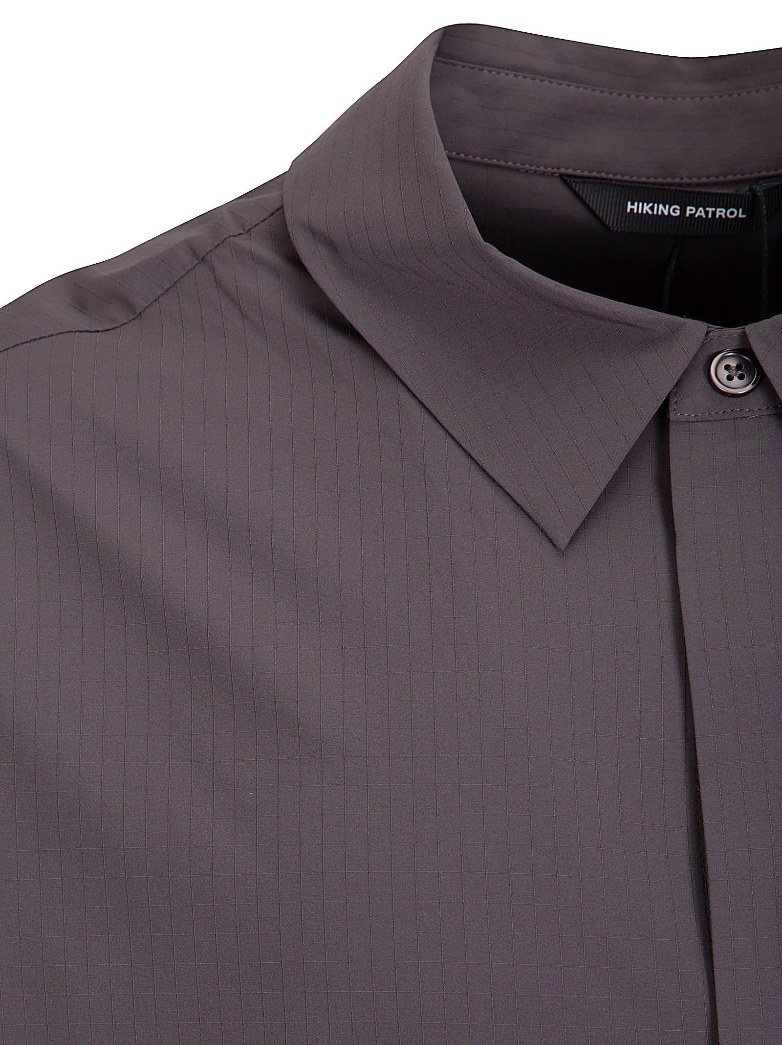 Chemise en tissu ripstop, coupe confortable, col classique, fermeture boutonnée dissimulée, empiècement dos découpé.