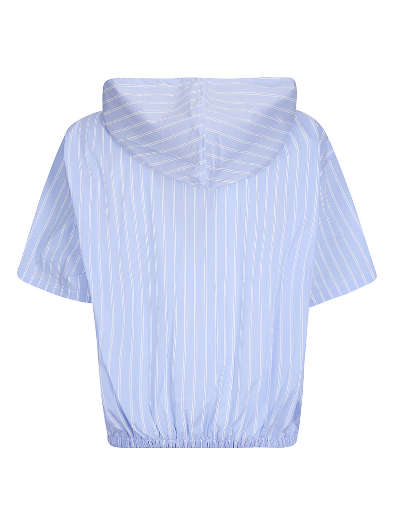 Chemise à capuche à manches courtes, deux poches à rabat sur la poitrine, coupe oversize et ourlet élastiqué.