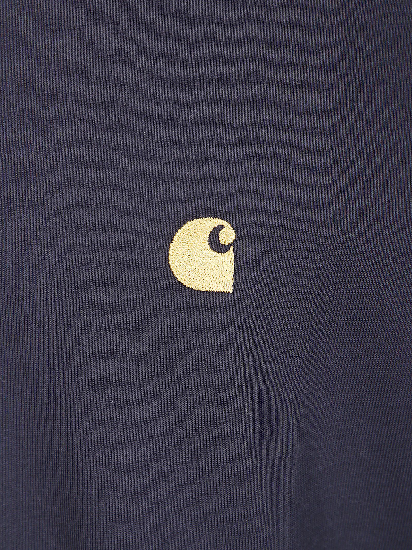 T-shirt col rond, manches courtes, coupe décontractée, détail logo doré brodé sur la poitrine.