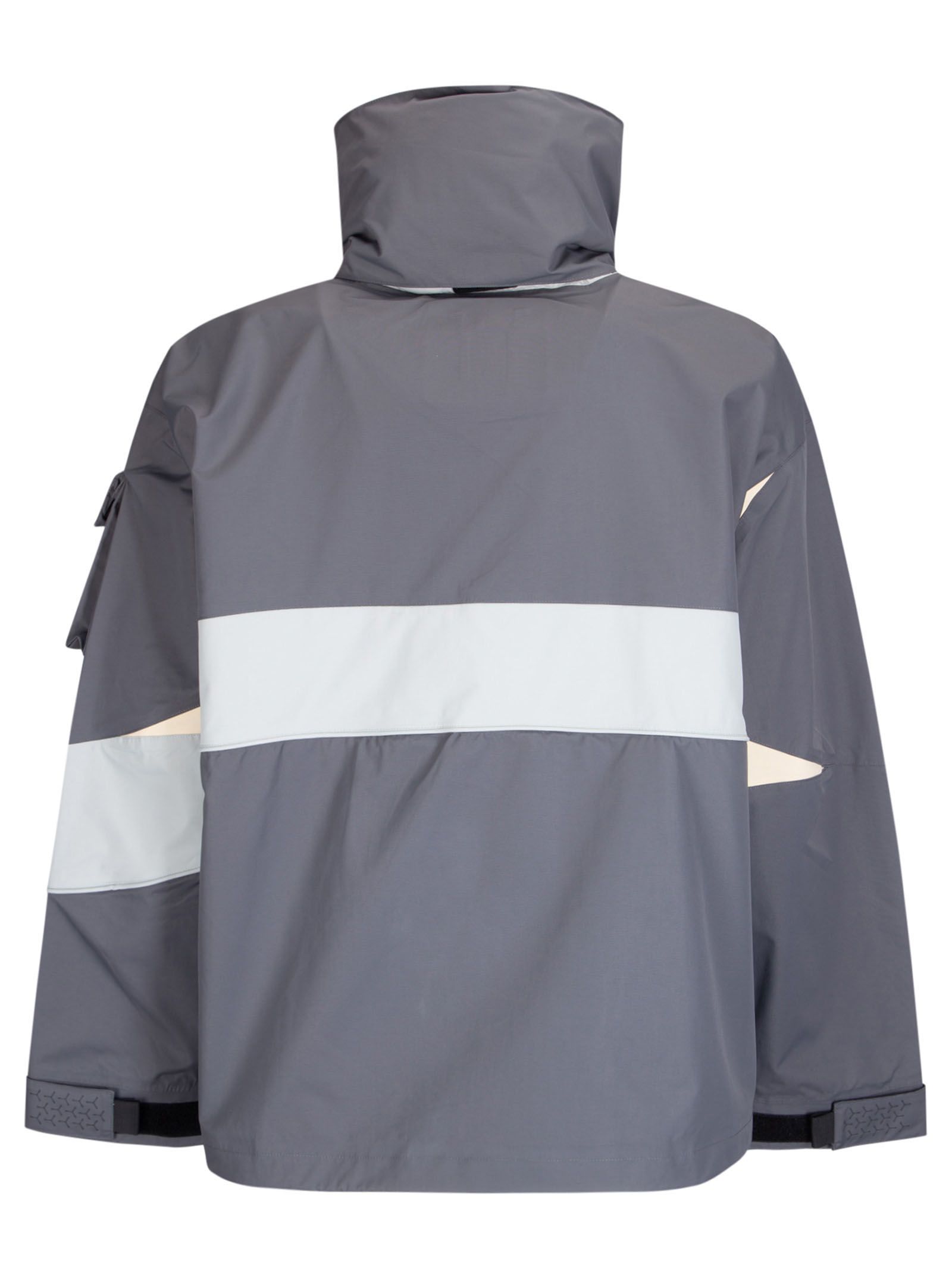 Giacca impermeabile in nylon con cappuccio, collo alto e cuciture nastrate. cappuccio, orlo e polsini regolabili.