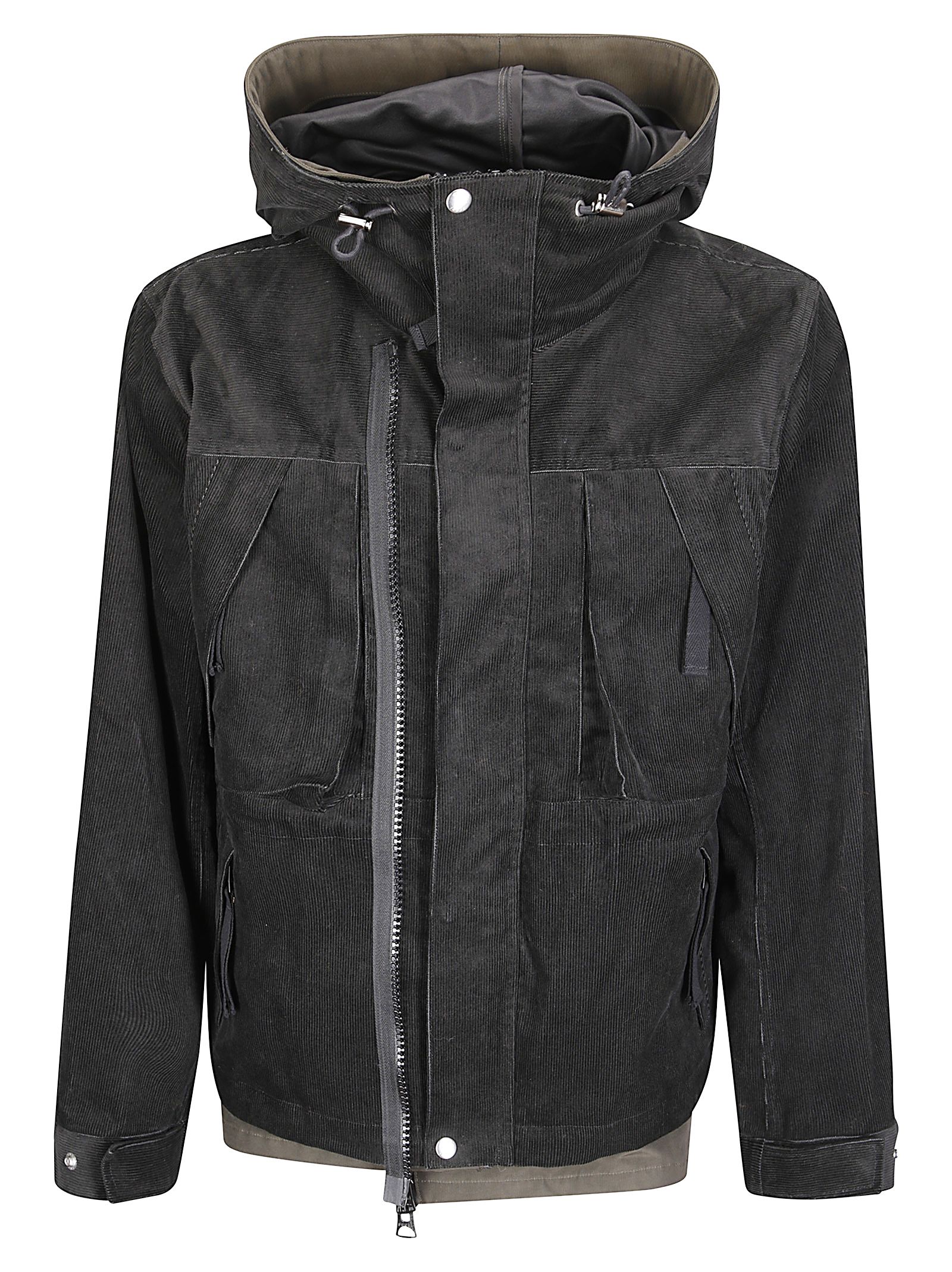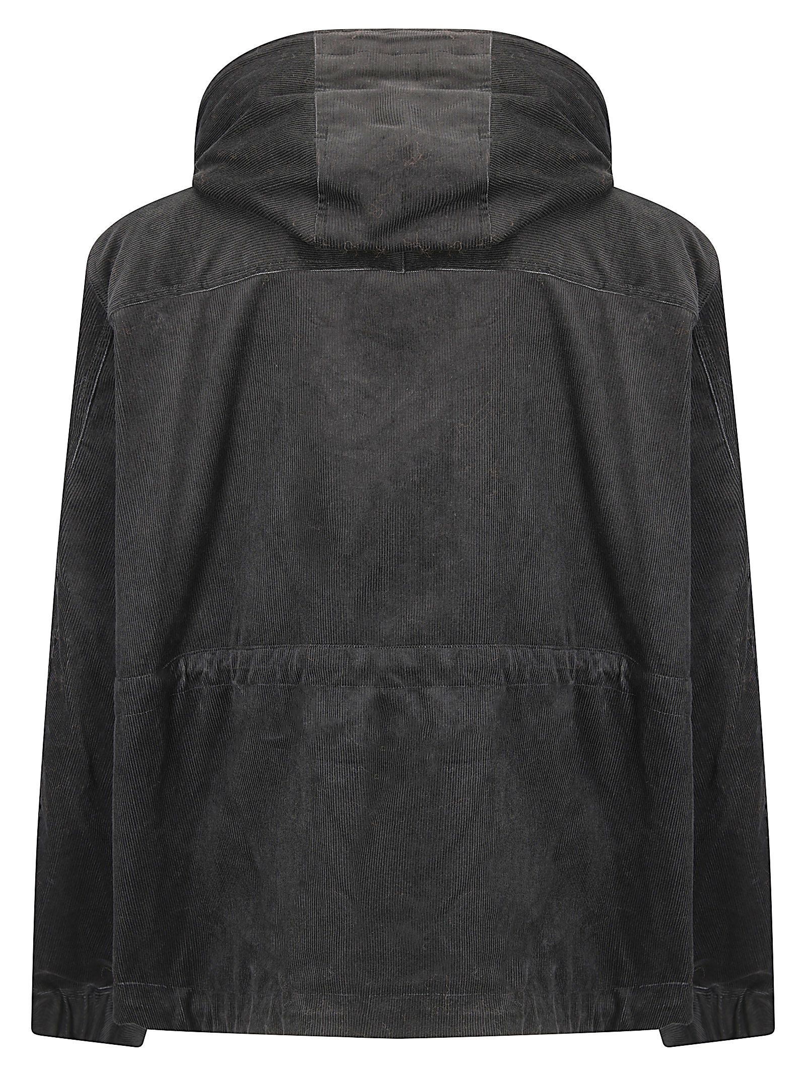 Veste en velours côtelé avec capuche, fermeture zippée et bouton pression, poignets boutonnés et élastiqués.