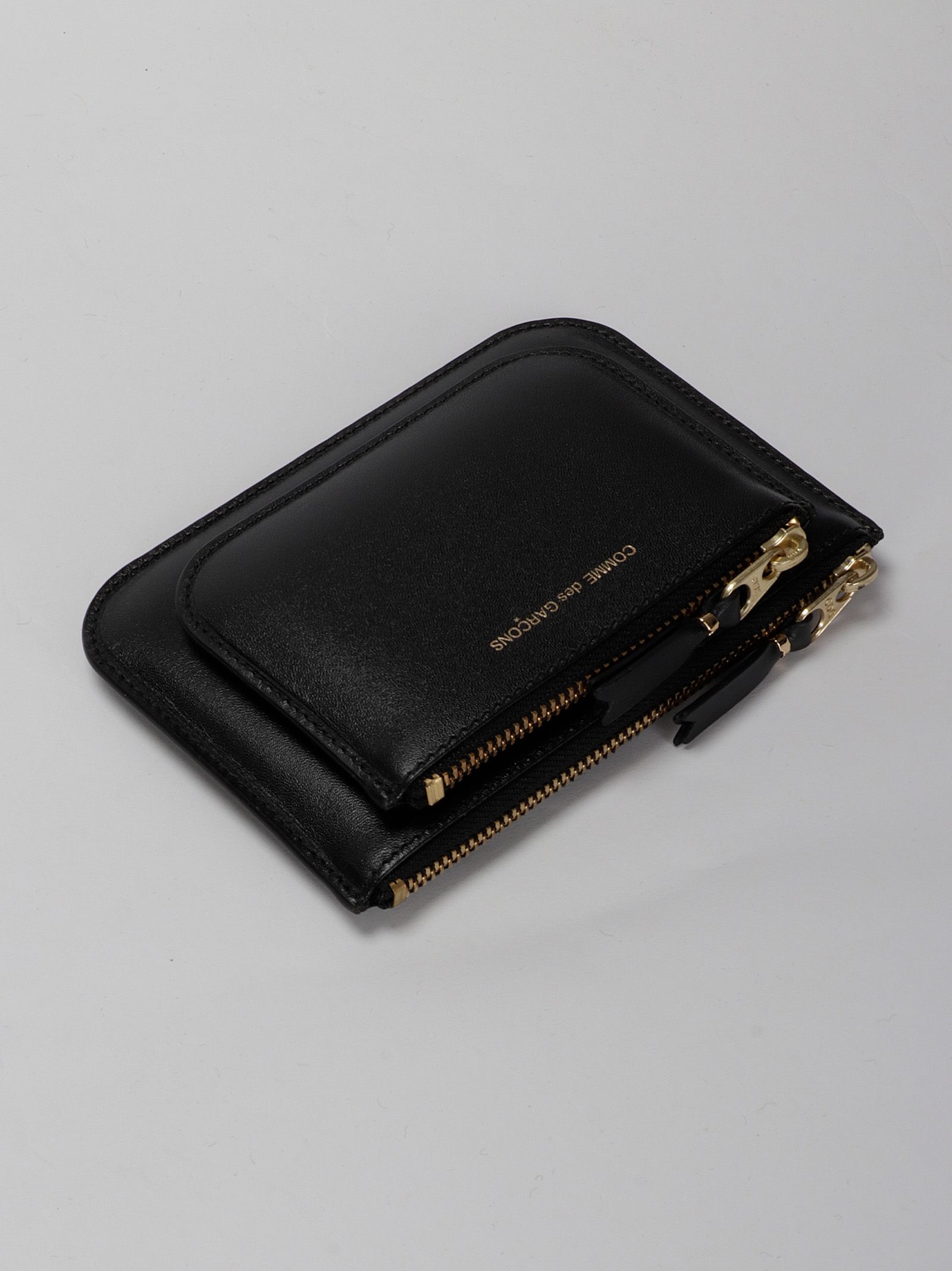 Portefeuille Comme des Garçons noir - noir - porte-monnaie - double poche - fermeture zippée - logo - cuir - fabriqué en Espagne