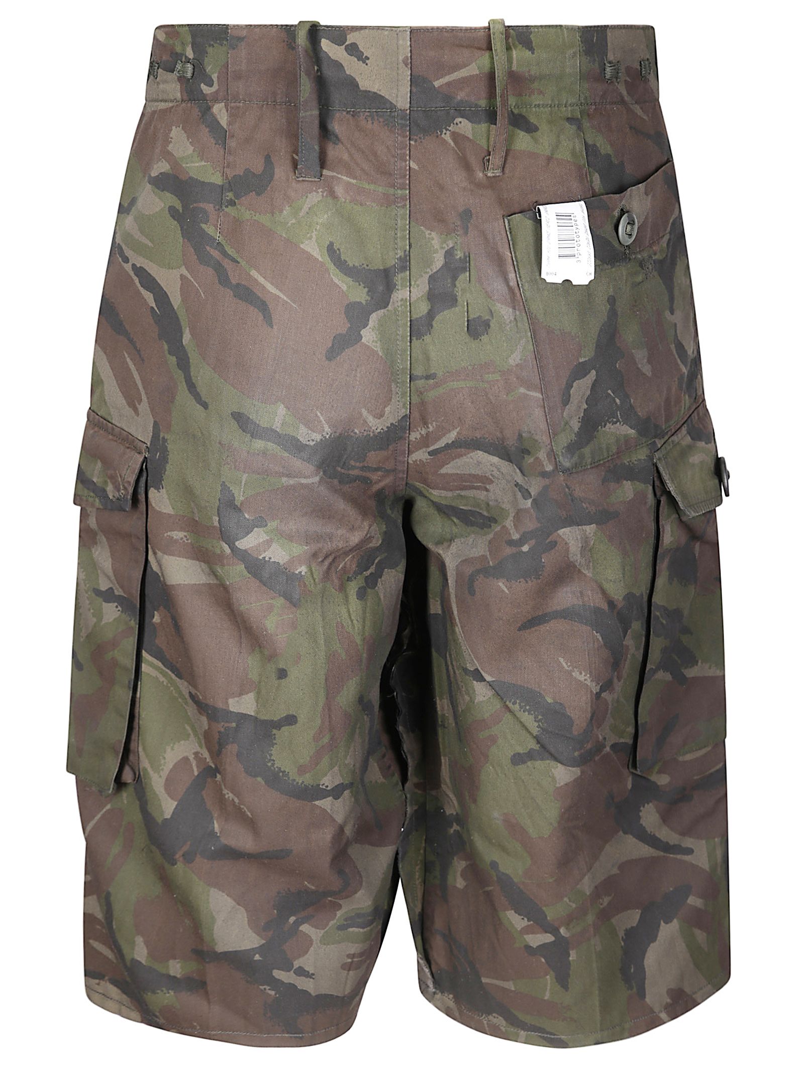 Short cargo à imprimé camouflage, fermeture boutonnée et zippée sur le devant, deux poches latérales en biais, deux poches cargo latérales, poche plaquée au dos.