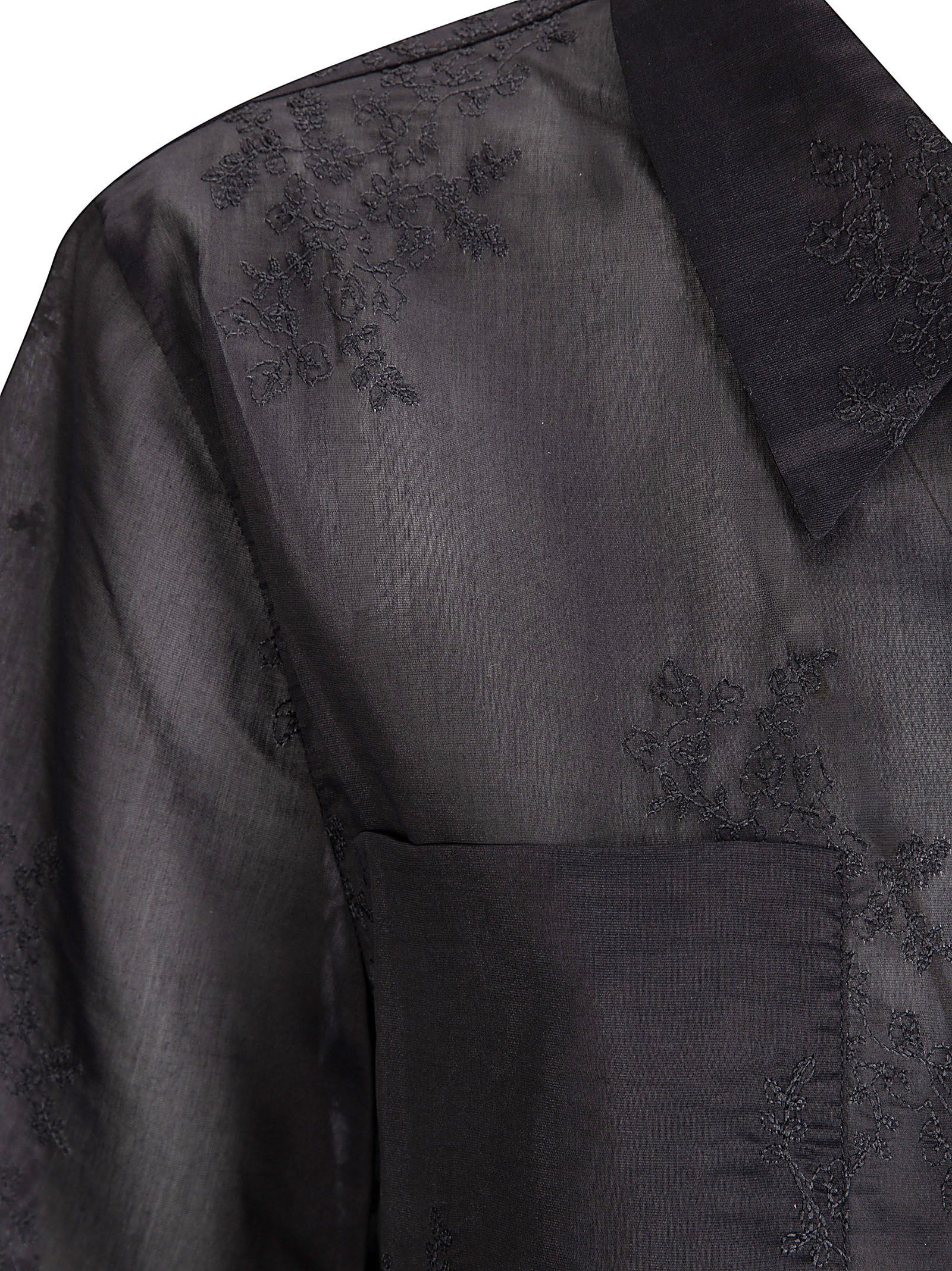 Camicia a maniche corte con vestibilità regolare, dettagli floreali ricamati, due tasche applicate sul petto e un orlo dritto.