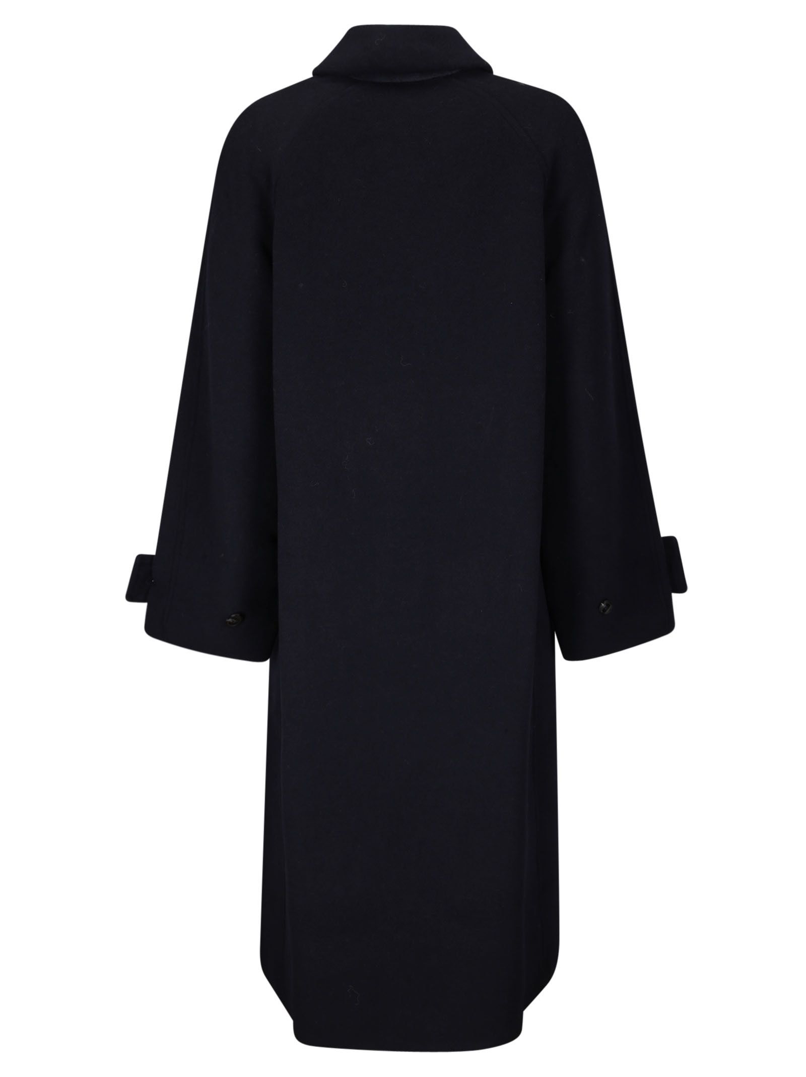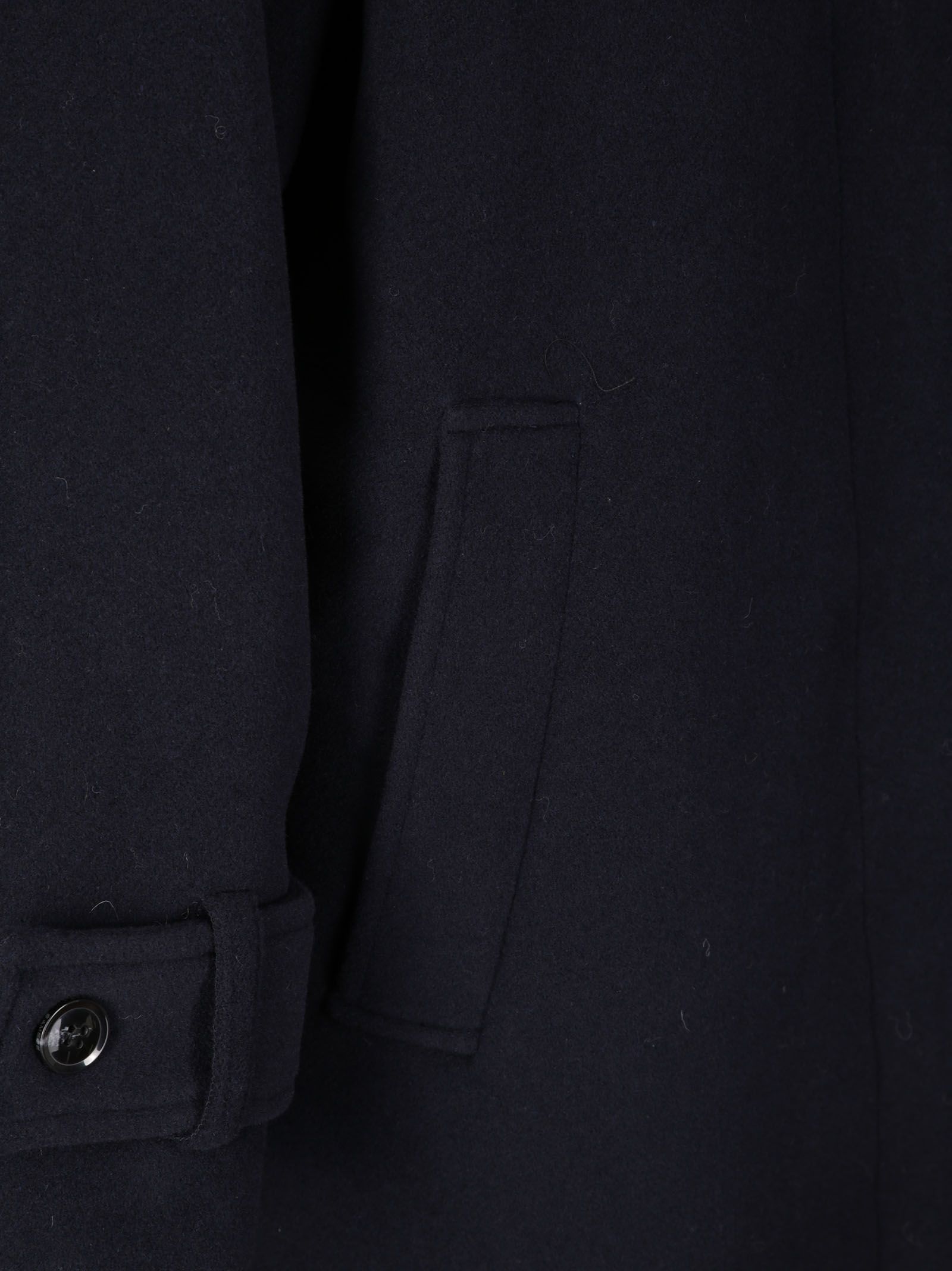 Cappotto monopetto misto lana, chiusura frontale con abbottonatura, colletto classico e due tasche a filetto laterali.