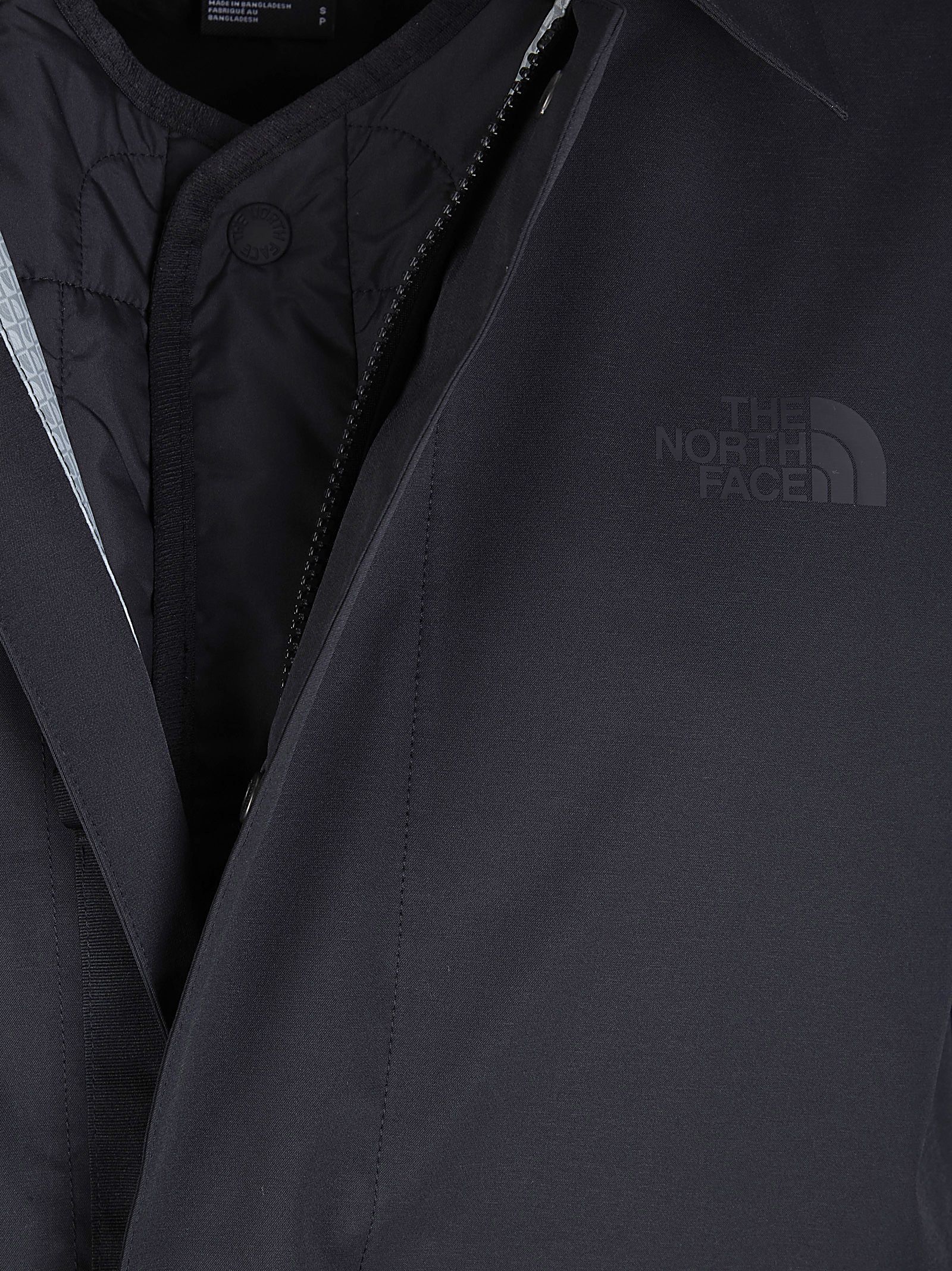 Giacca idrorepellente dotata di vita regolabile e spacchetto posteriore, gilet interno leggero con imbottitura sintetica, chiusura centrale con cerniera e bottoni automatici nascosti.