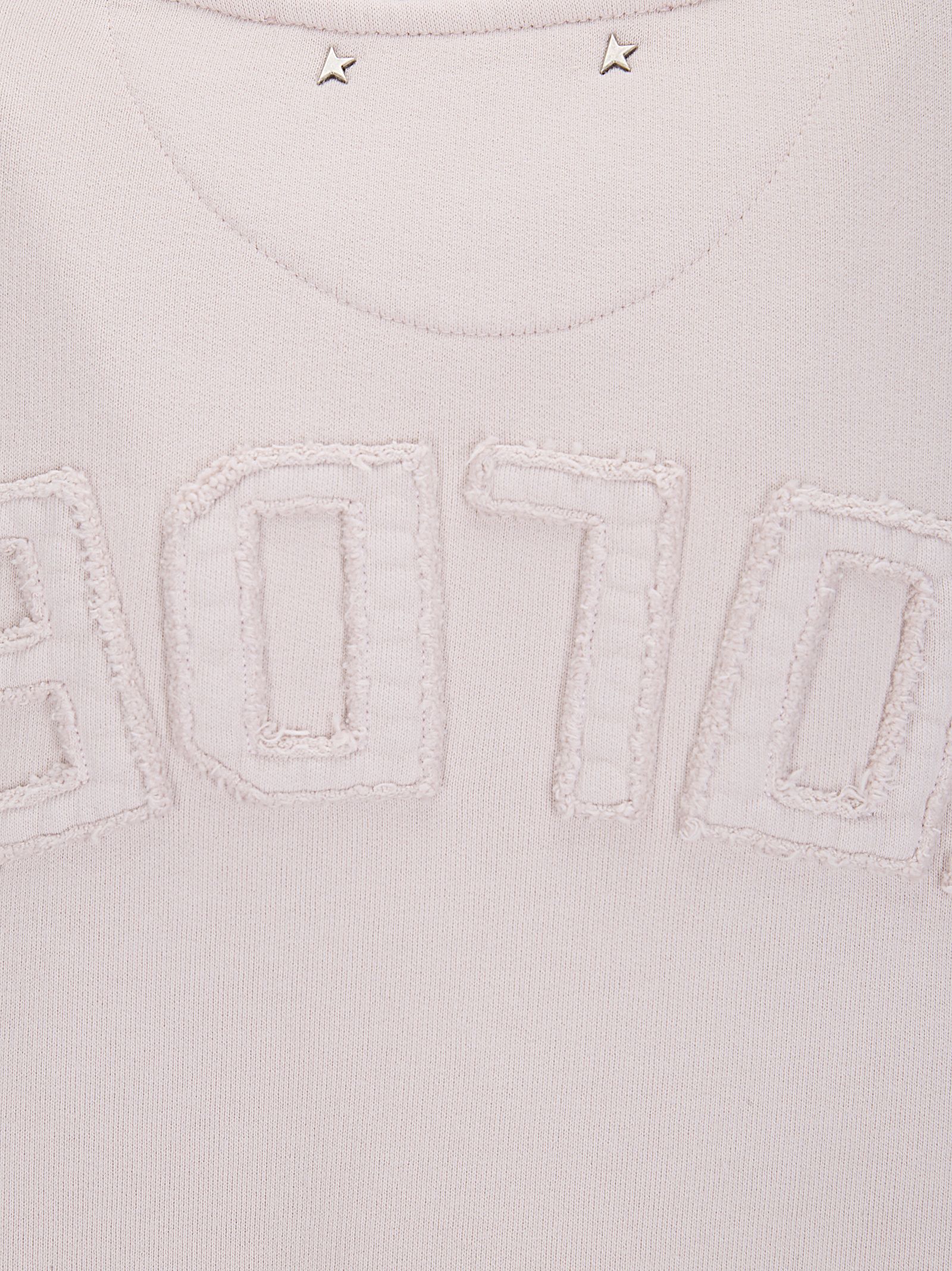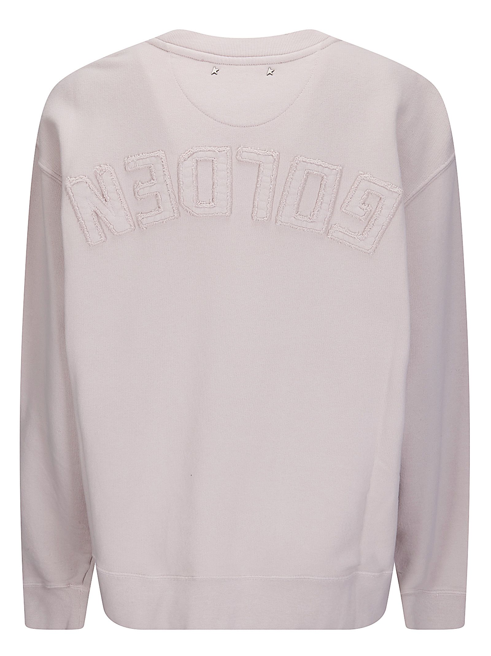 Felpa girocollo, maniche lunghe, effetto distressed, scritta in stoffa applicata posteriore, vestibilità morbida