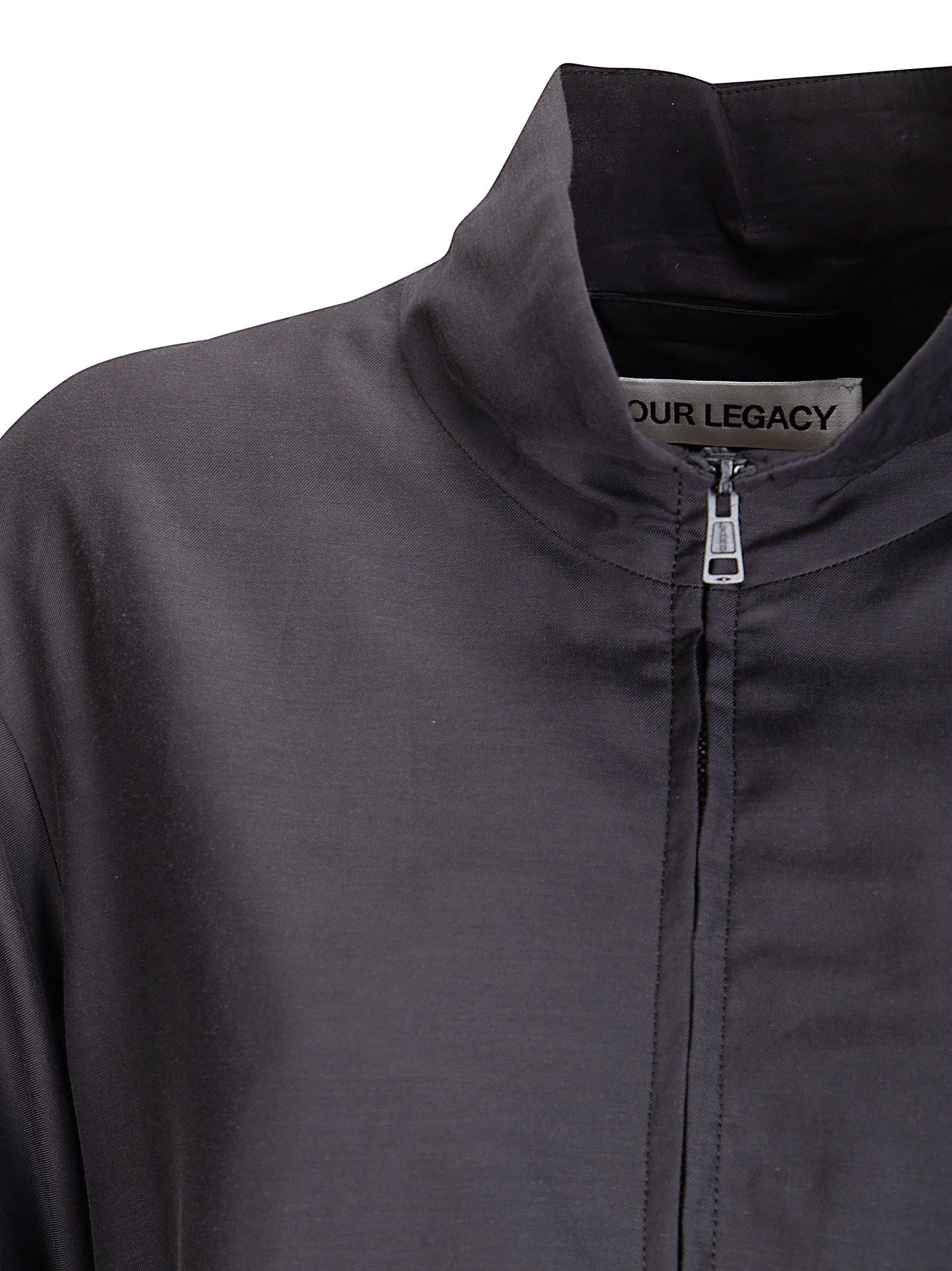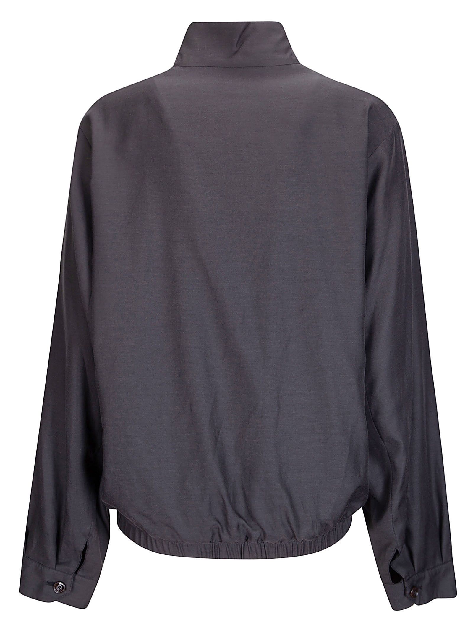 Giacca in cupro di cotone, vestibilità squadrata, collo a imbuto, cerniera a doppio cursore e polsini con bottoni.