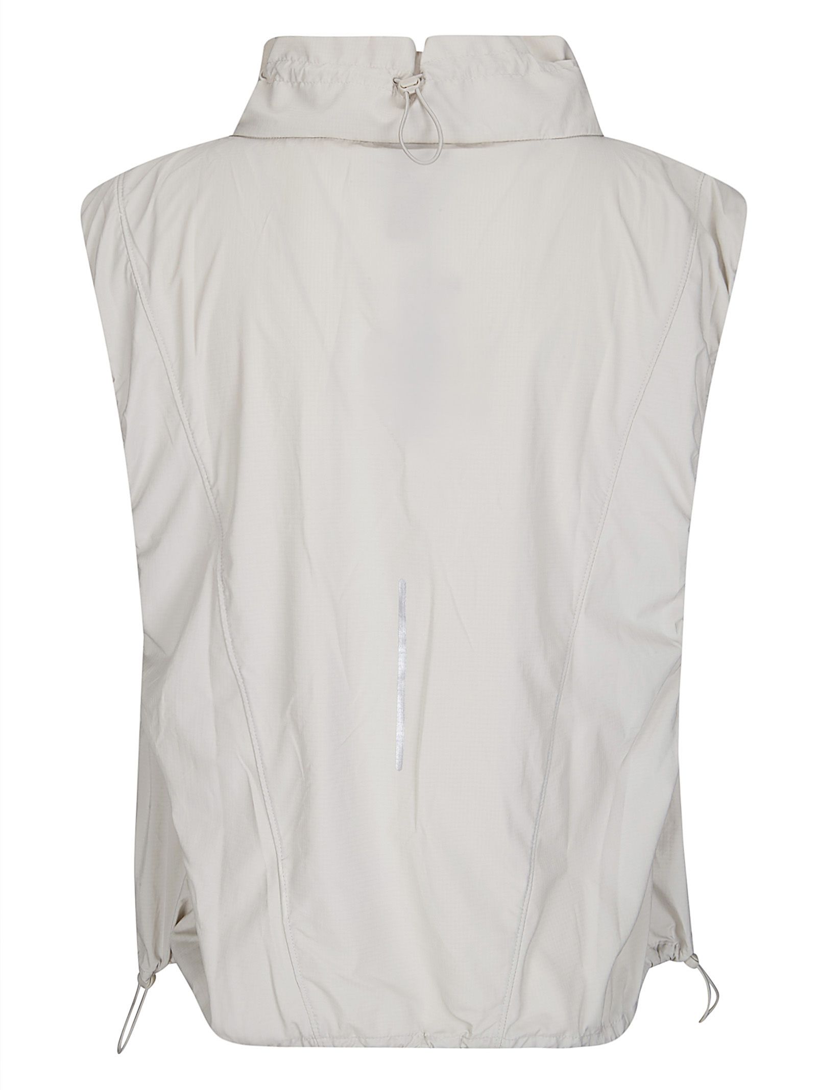 Smanicato leggero in tessuto tecnico, collo alto, chiusura con zip, tasca sul petto, logo frontale