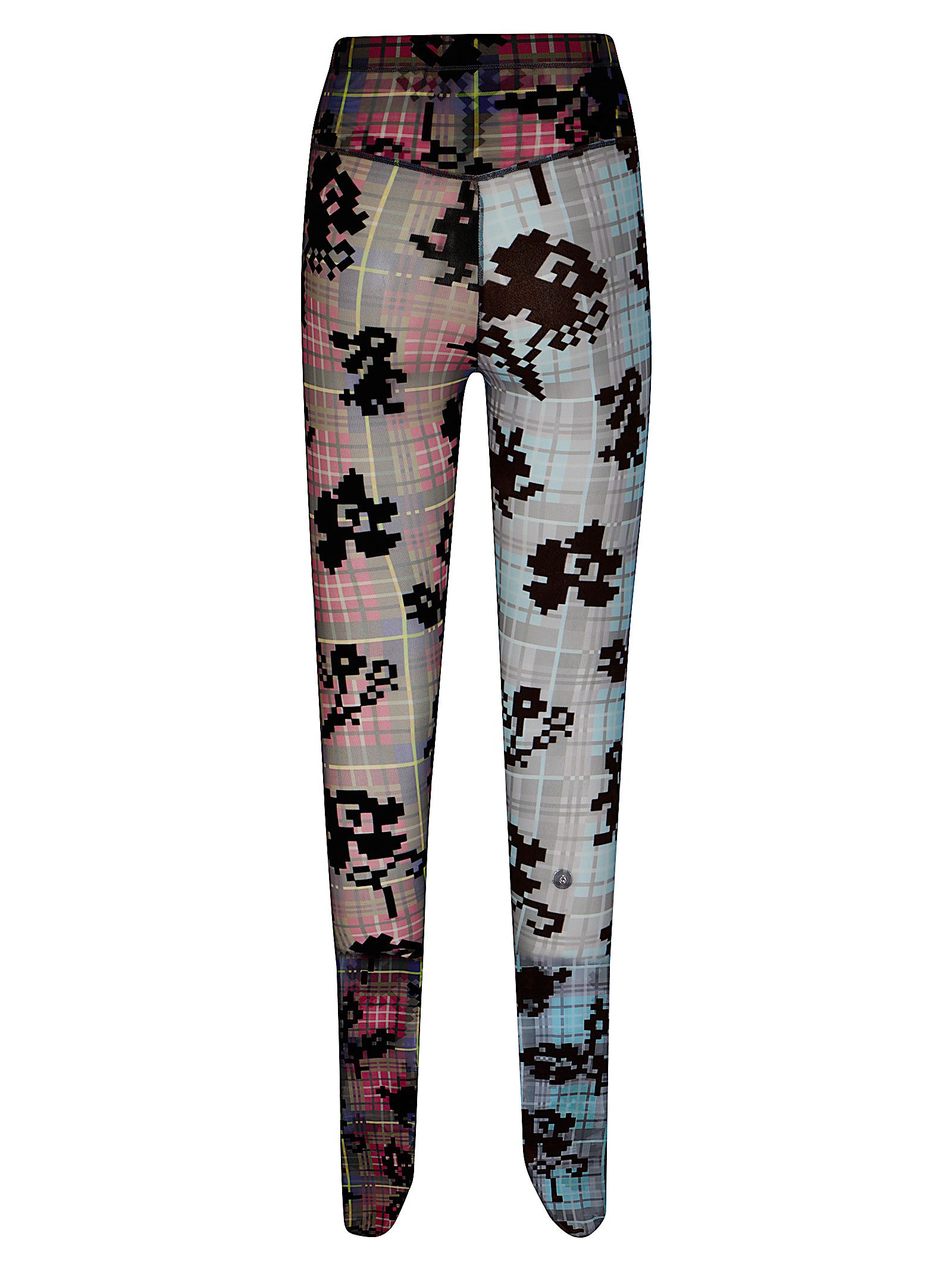 Leggings dritti con piede, maglia a rete, vita elasticizzata.