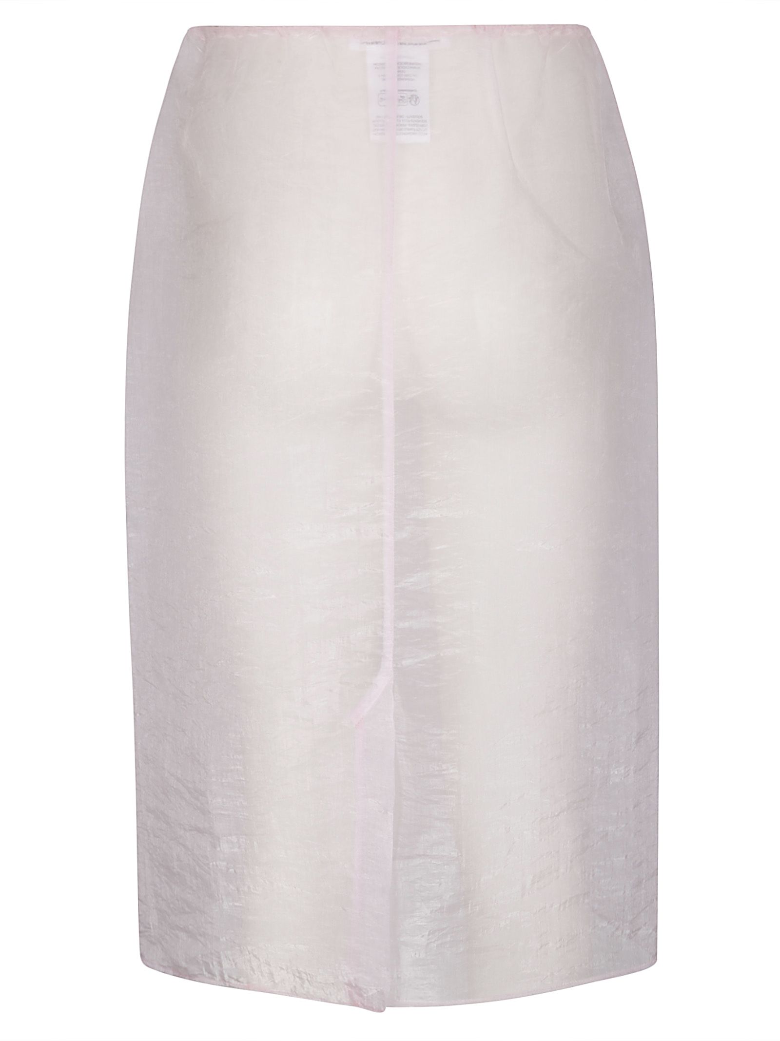 Gonna midi design semi trasparente, vita senza cintura con coulisse, spacco posteriore.
