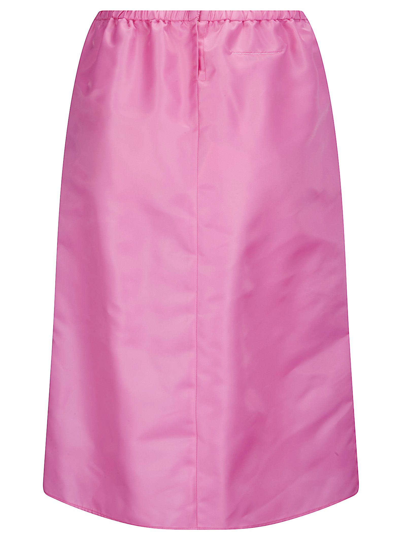 Gonna svasata con vita elasticizzata, chiusura con bottone sul retro, due spacchetti laterali, logo tono su tono sul davanti