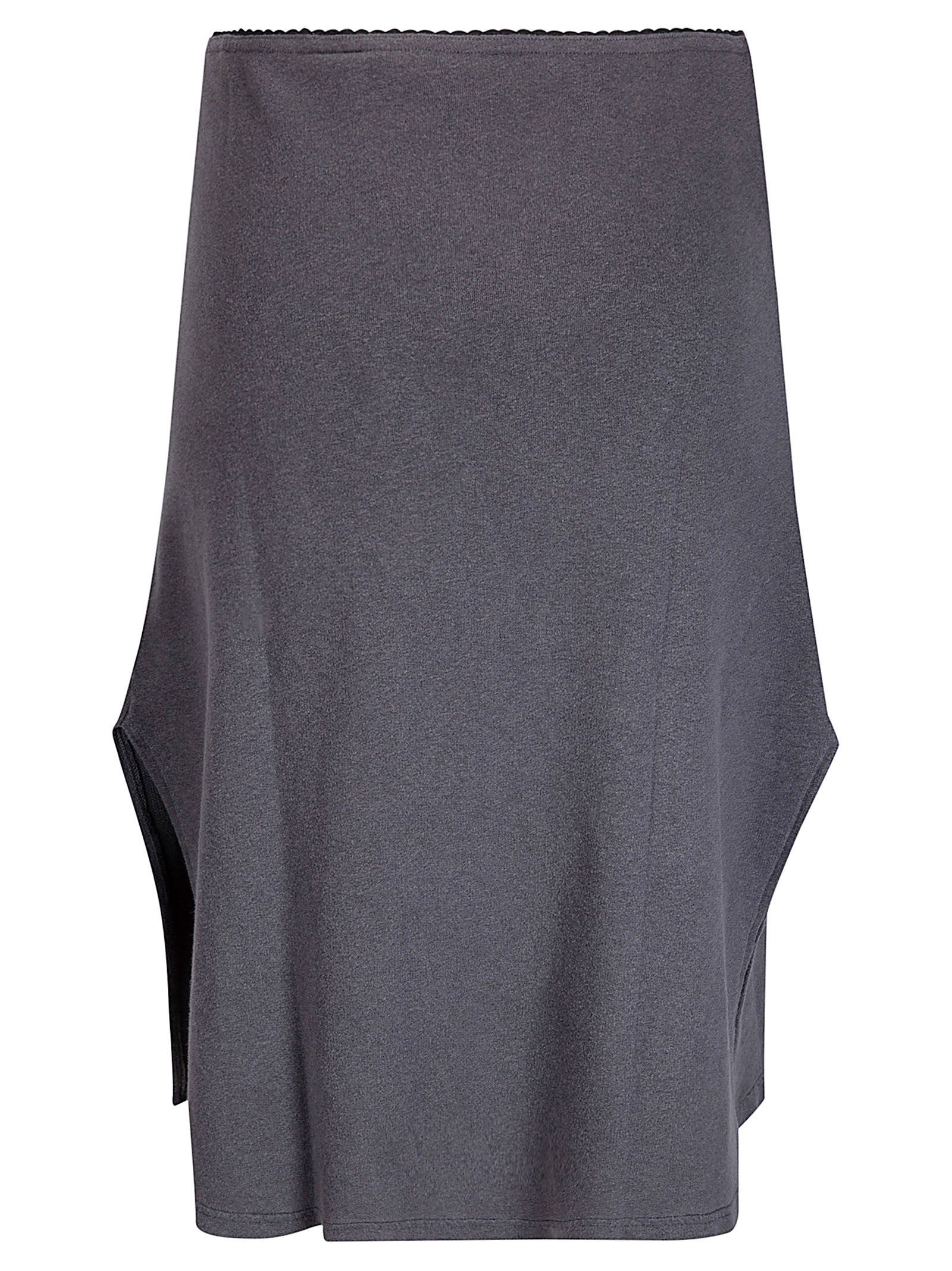 Gonna leggermente svasata con vita elasticizzata, spacco laterale.