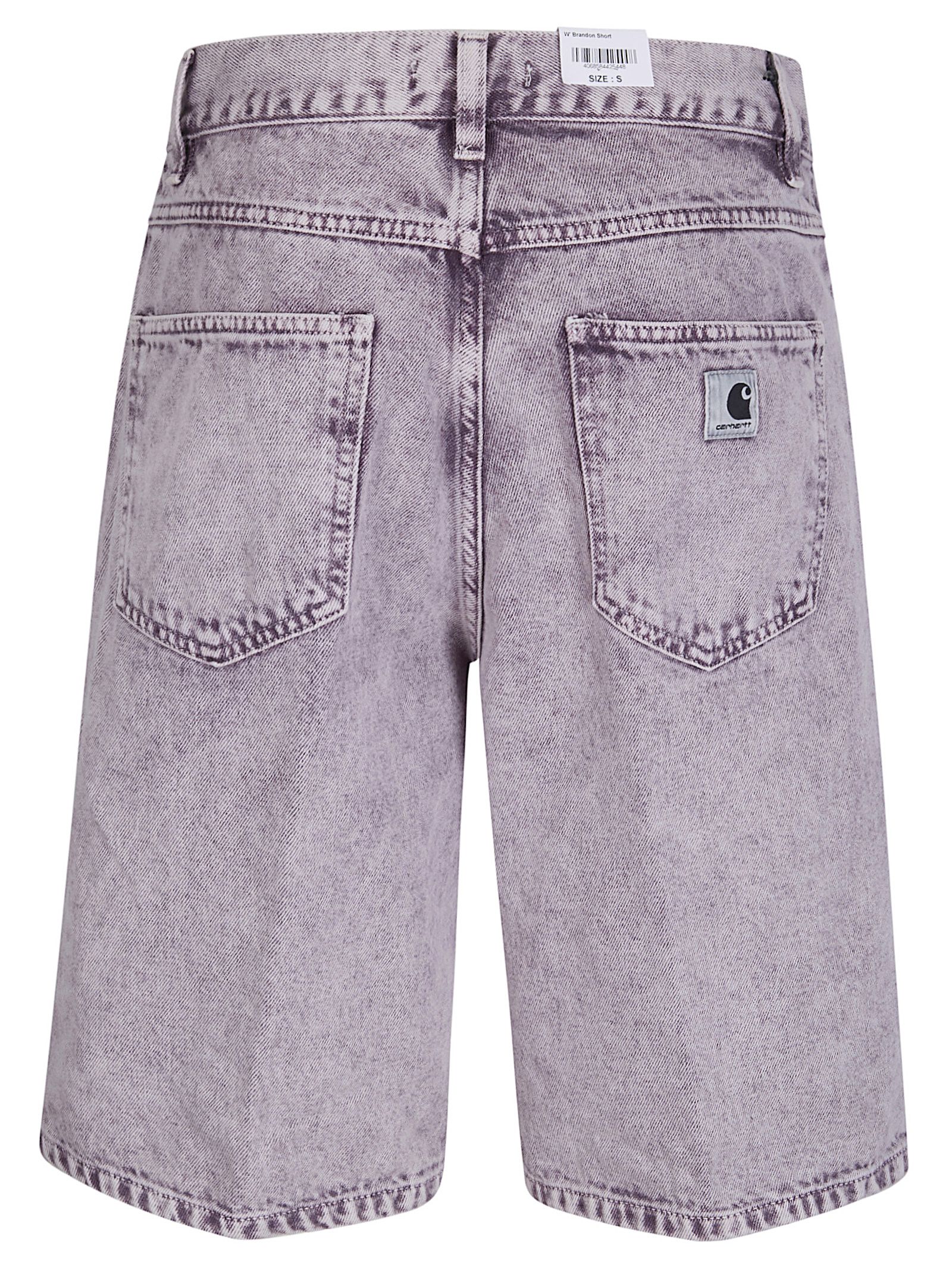 Shorts in denim modello Brandon, dyeing treatment, cotone spesso, bottone a contrasto, lunghezza al ginocchio.